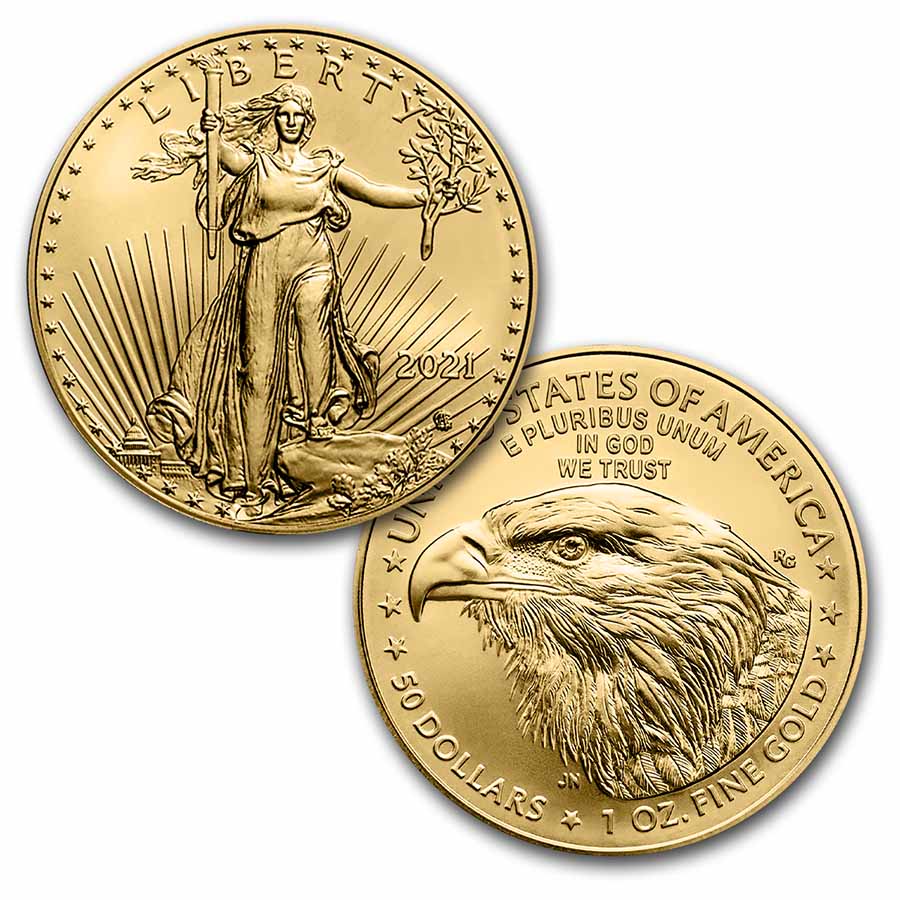 One of the most popular designs in American coinage, the Gold Eagle combines collectibility and beauty with Gold bullion appeal. Add the 2021 1 oz Gold Eagle to your cart today!