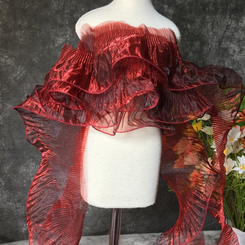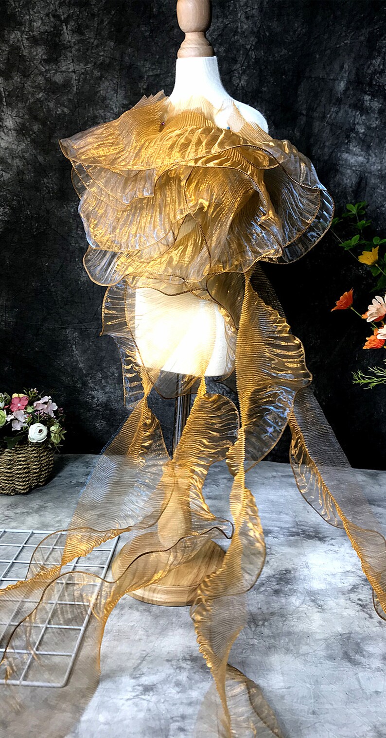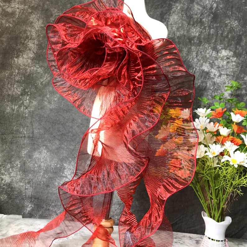 Romantic ombre organza ruffled lace trim, single wave pattern ruffle organza trim for costume design, millinery, sleeve, haute couture