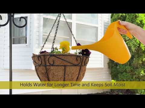 Hang in minutes with pre-installed chains and secure S-hooks. - Large capacity, circular frame allows enough space to create the perfect flower arrangement. - Simply add dirt and the desired plant. - Included pre-formed coco fiber liner provides superior drainage and air flow promoting healthier plants. - Sufficient depth allows for ample root growth.