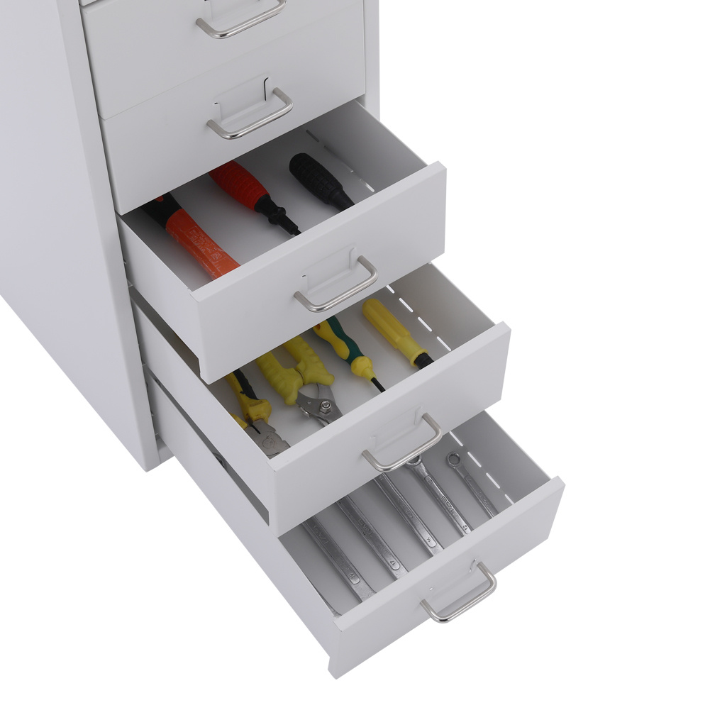 With 10 drawers, this filing cabinet has ample storage space for organising different files.