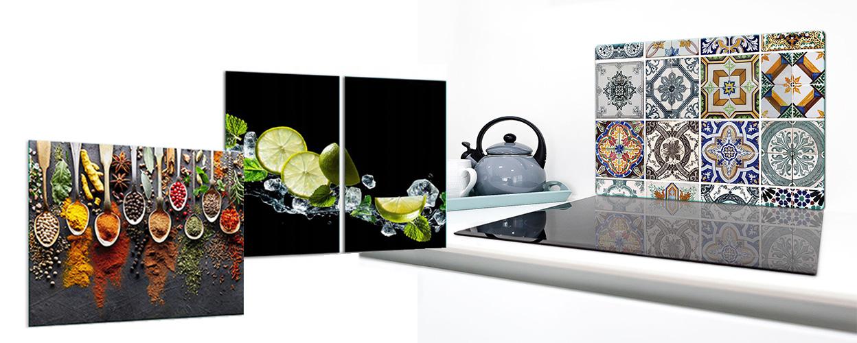 ◼️Wir bieten dekorative Glaspaneele aus gehärtetem Glas, das für seine Haltbarkeit auch bei hohen Temperaturen geschätzt wird, daher sind sie perfekt für die Küche als: Schneidebretter, Schutzplatten für Induktions-, Keramik-, Glaskeramik- und Elektroherde, Spritzschutz, Untersetzer für warme Speisen.
