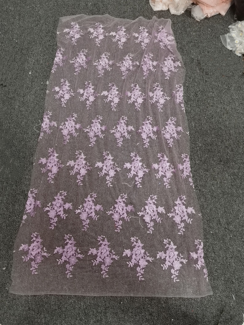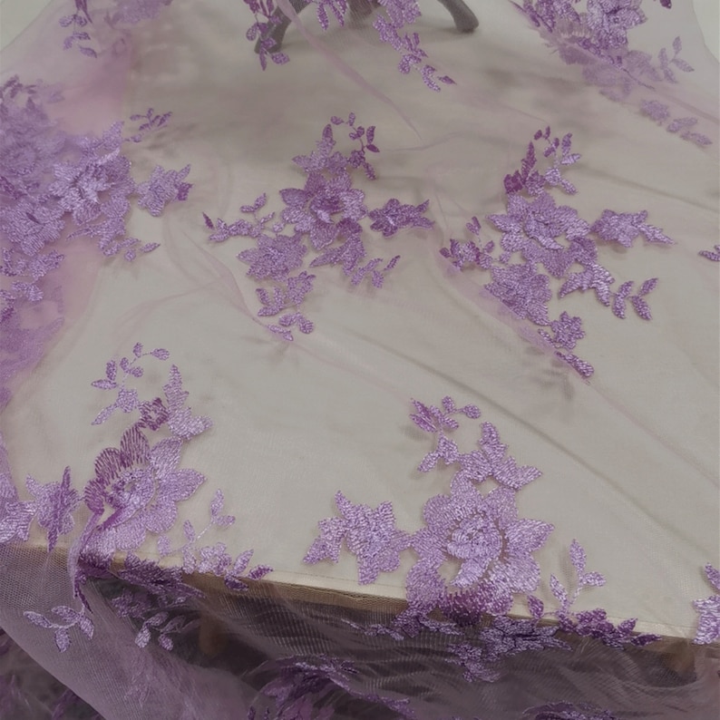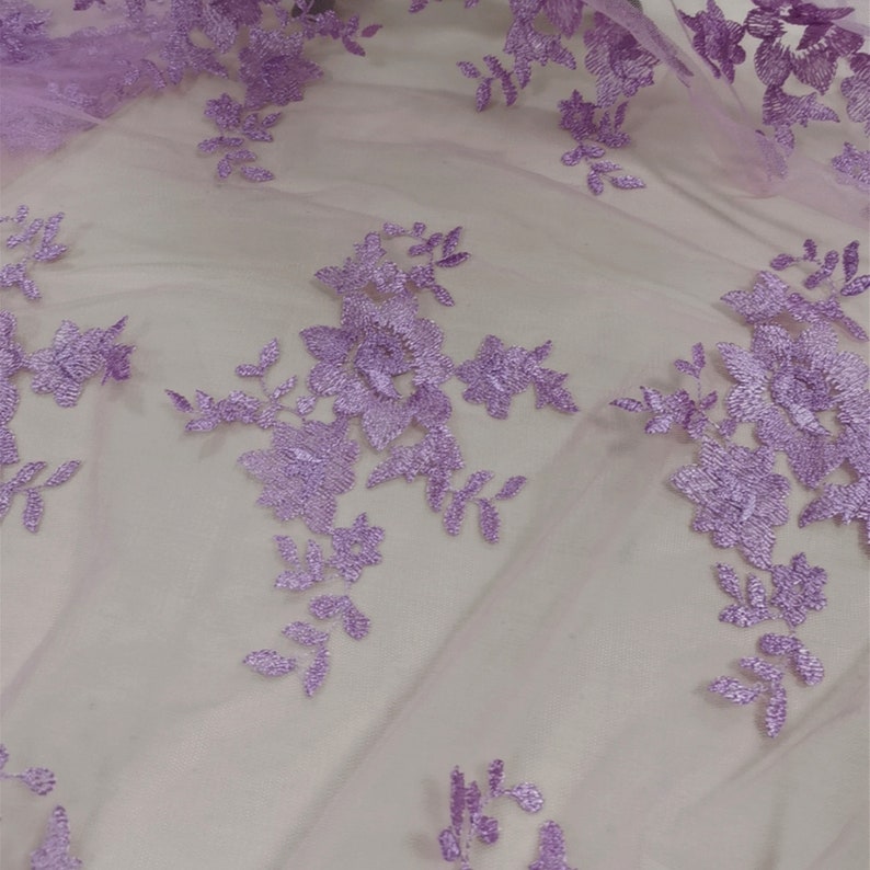 Charming Purple Lace Fabric, Violet Floral Embroidery Lace Fabric, Wedding Gown Bridal Veil Lace Fabric 51" Wide By the Yard