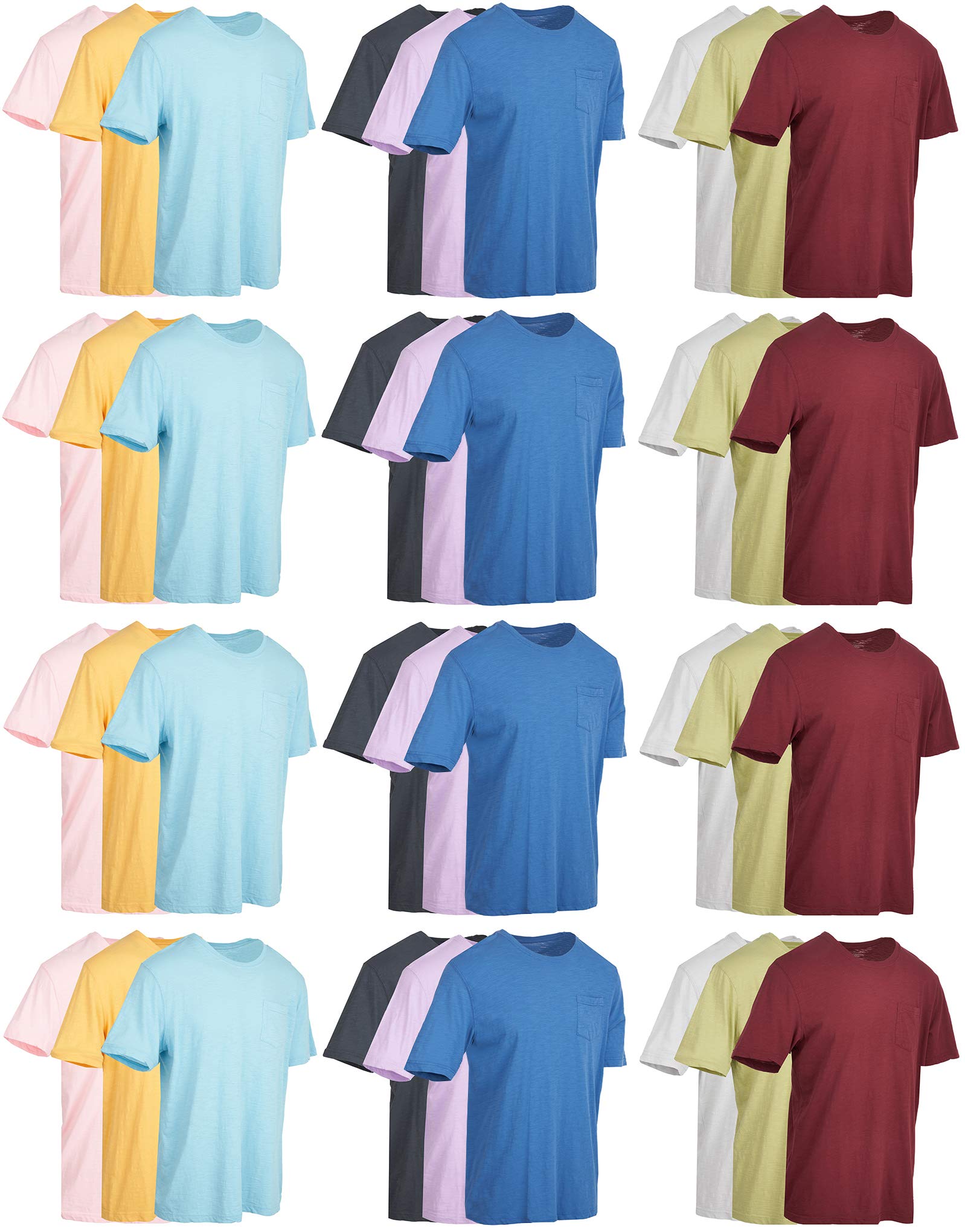 36 Pack of Mens Cotton Slub Pocket Tees Tshirt, T-Shirts in Bulk Wholesale, Colorful Packs (Small)