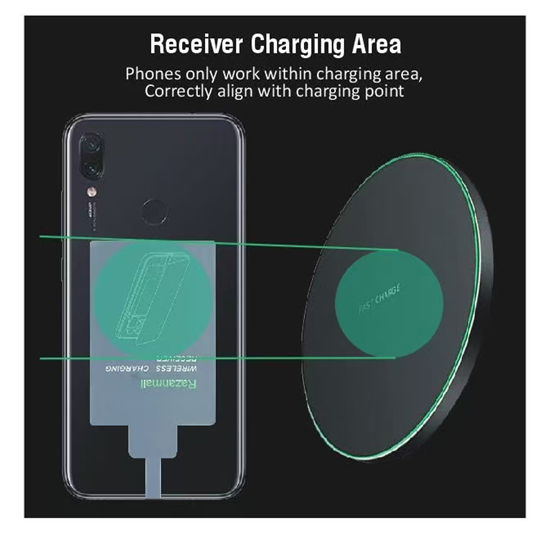 1).This item is a set of external Type-C receiver with wireless charger as a transmitter to charge your wireless phone on the desktop or car; 2).Please take a few minutes to read the user guide in English or watch the video on the image gallery to check if you can accept this charging way and power output; 3).The external type-c receiver will occupy your phone's charging port,but it is easy to get off by the thumbnail; 4).Please prepare a simple/Basic case and wall charger yourself.