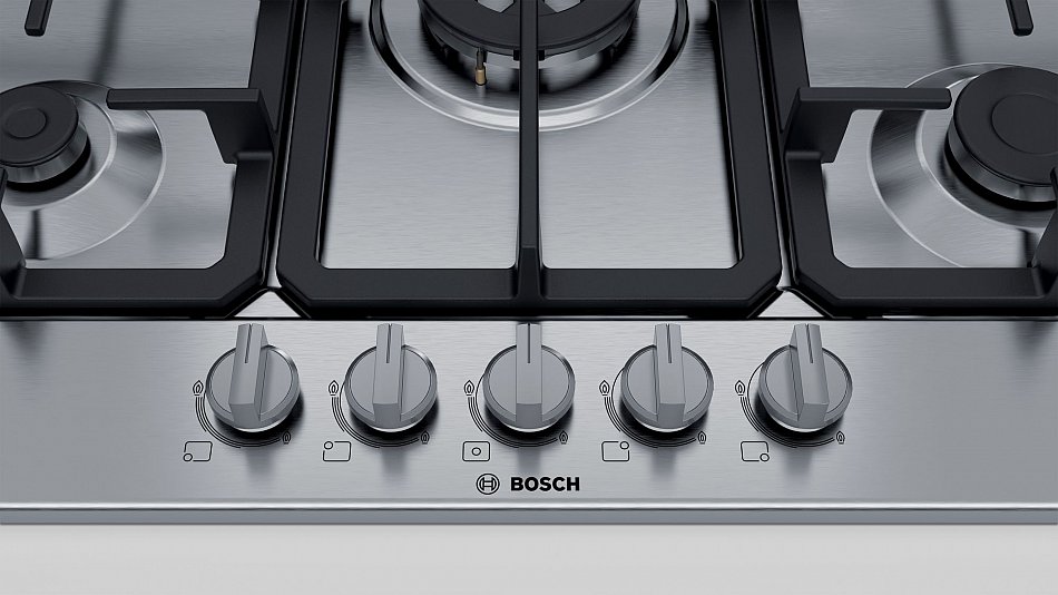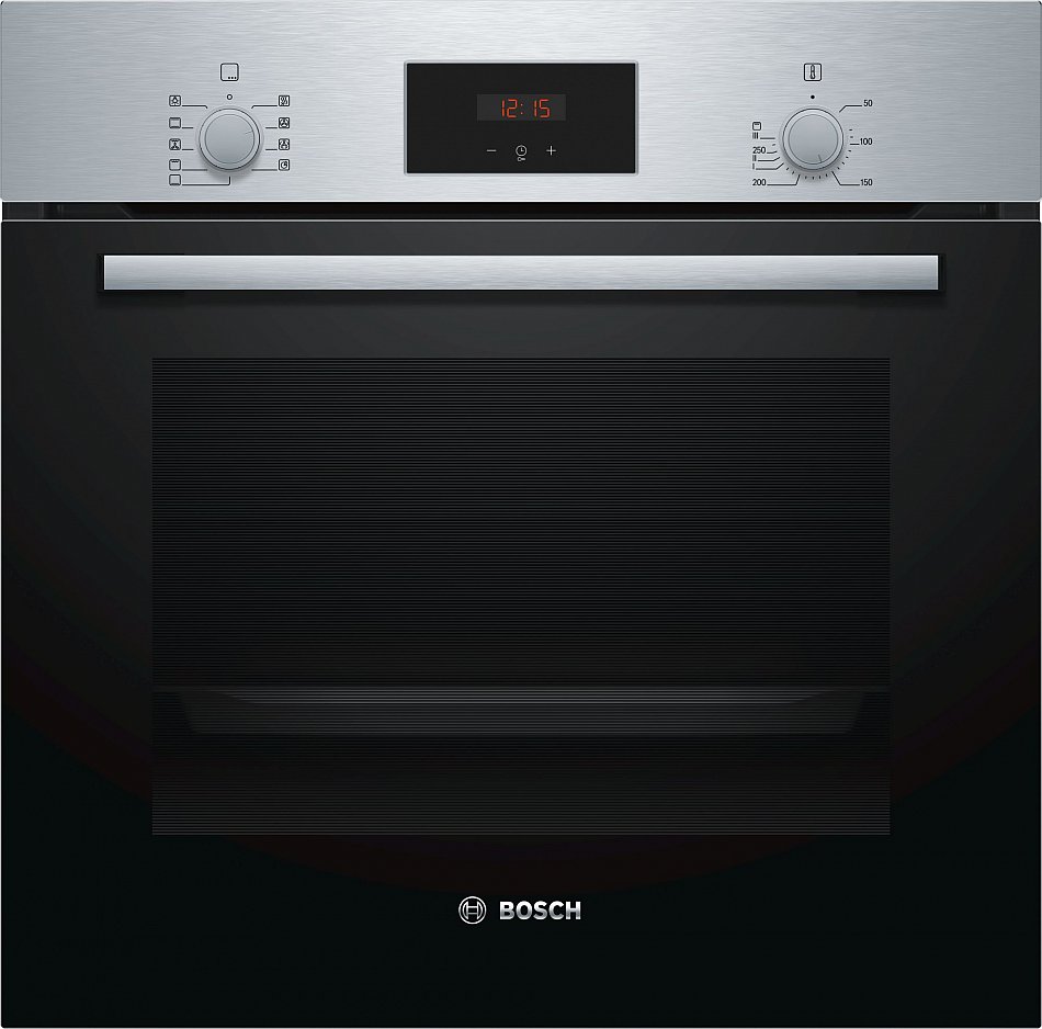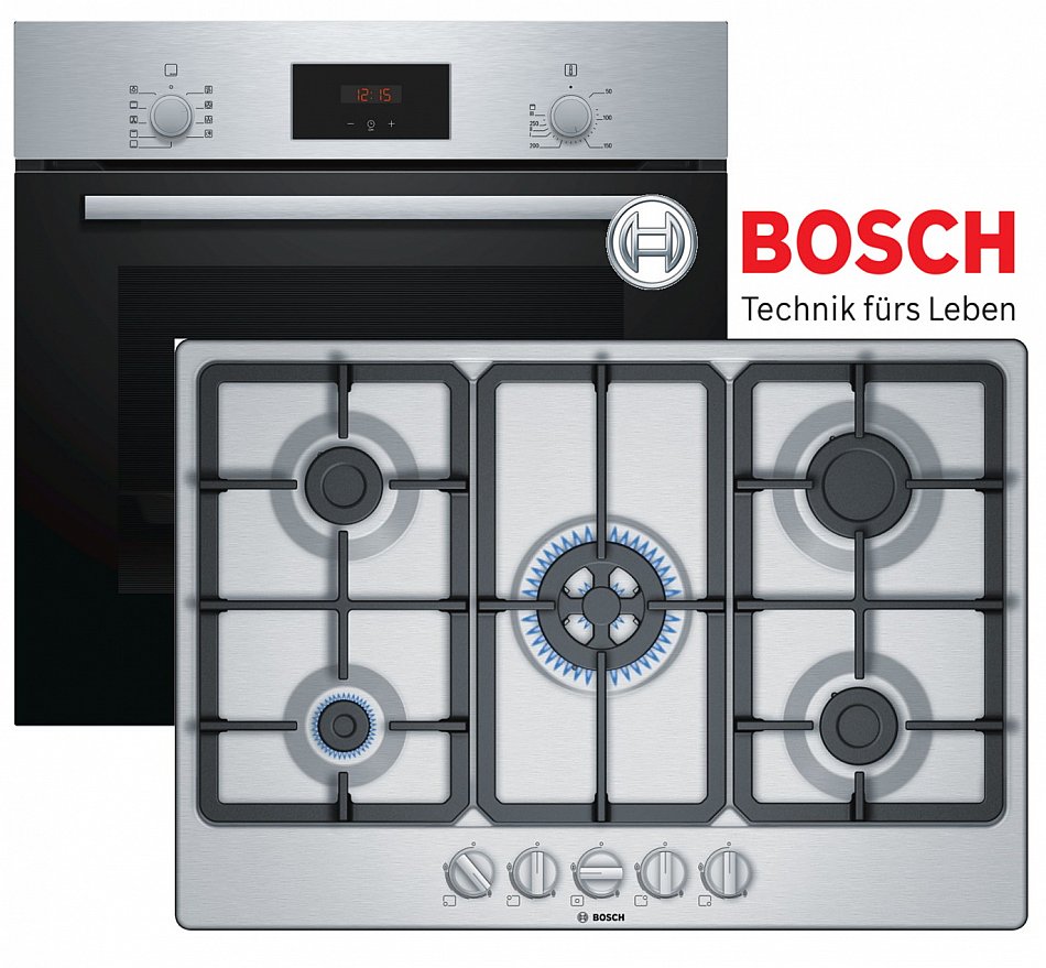 In unserem Angebot bieten wir Ihnen einen Umluft Einbaubackofen von BOSCH mit Teleskopauszug + Gas -Kochfeld 75cm. von Bosch , Edelstahl.