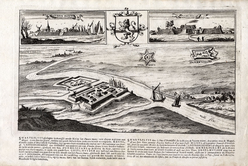 Antique Print of Zwartsluis and Ommerschans by Bouttats (1680) $ 261.86 Availability: in stock Condition : Fine; General age related toning and light staining. Please study image carefully. Date : 1680 Overall size : 28 x 18.5 cm. Image size : 24.3 x 18.8 cm. Description: Antique print titled 'Swerte Sluys - Ommer Schans'. Views of Zwartsluis and Ommerschans near Meppel and Genemuiden in the province of Overijssel, with boats on the Vecht river, the Netherlands, Holland. This print originates from 'Thooneel der Steden ende Sterckten van 't Vereenight Nederlandt met d'aengrensende Plaetsen soo in Brabandt Vlaenderen als anden Rhijn en elders verovert door de Waepenen der Groot-moghende Heeren Staeten onder het gheley vande seer Edele Hooghghebore Princen van Oranien', Antwerpen, 1680. Artists and Engravers: Engraved by Gaspar Bouttats (Flemish, 1625-1695) after Ioan / Jan Peeters (1624-1677). |