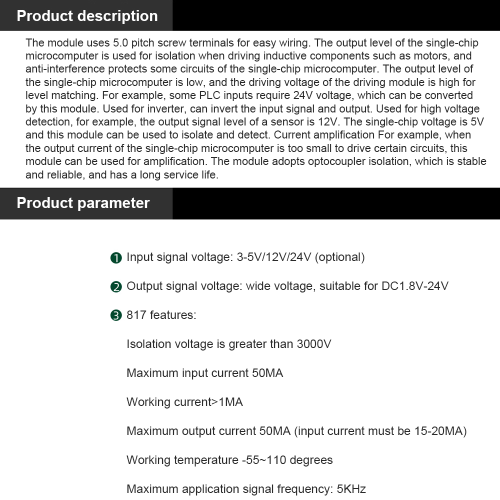 3-5V/12V/24V One Way Optocoupler Isolation Module Photoelectric Isolator Signal