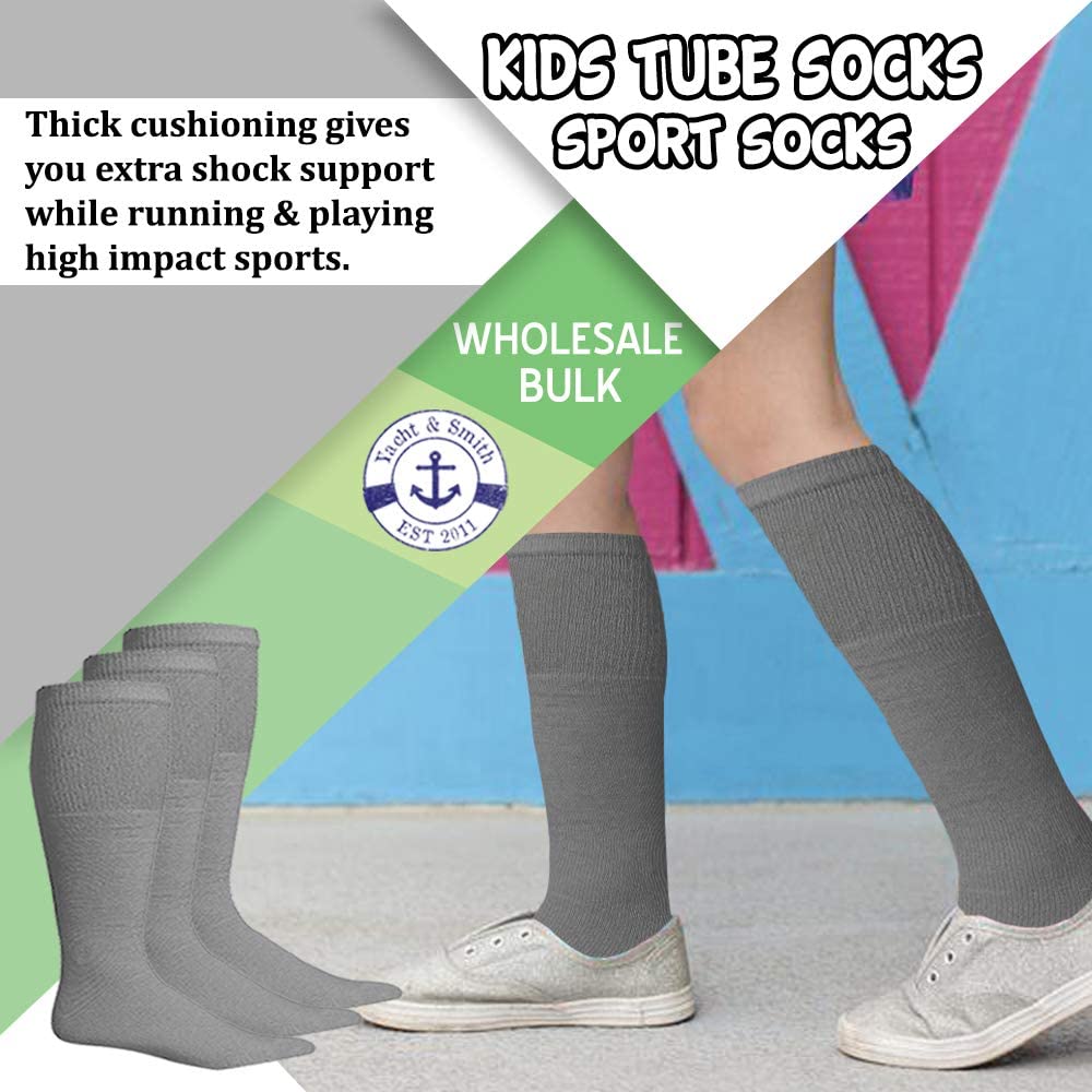 • 12 PAIRS OF WHOLESALE KIDS GRAY TUBE SOCKS: Purchasing these socks at heavy discounted prices is a great way to save on budget. Planning a event or buying for a cause becomes simplified and cost effective. Purchase a variety of pack sizes, colors and sizes for Men Woman and Children at the lowest wholesale price.