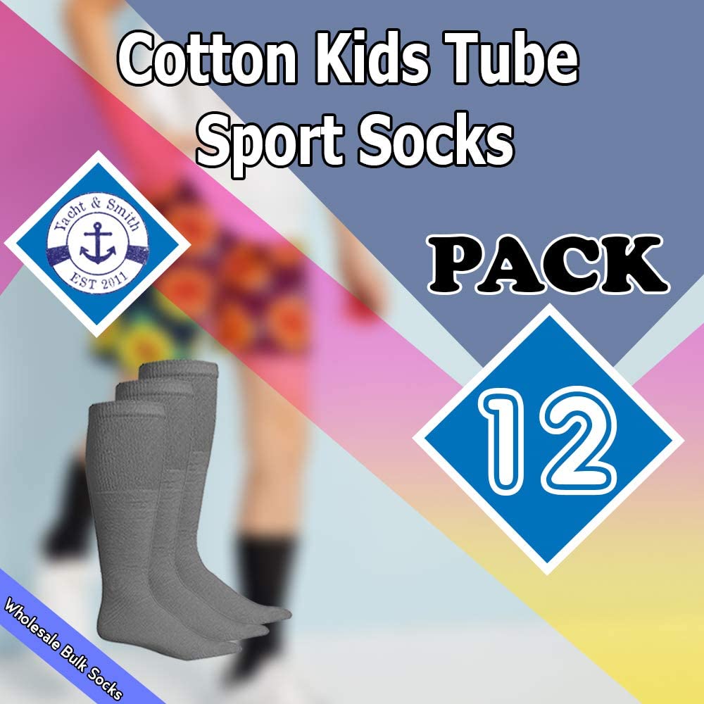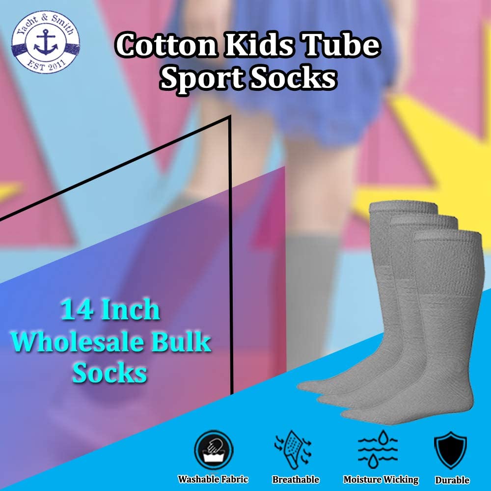 Yacht & Smith 14 Inch Wholesale Kids Tube Socks, Cotton Bulk Sport Socks Size 4-6