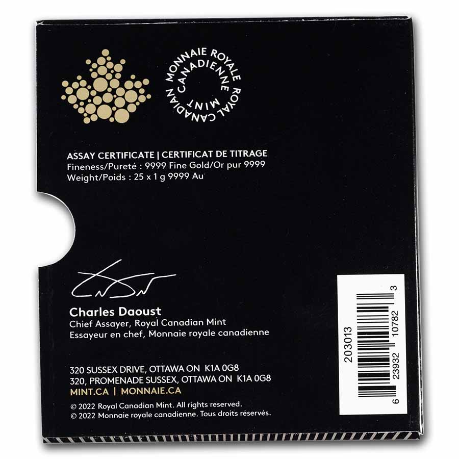 Coin Highlights: - Contains 25 total grams of .9999 fine Gold.