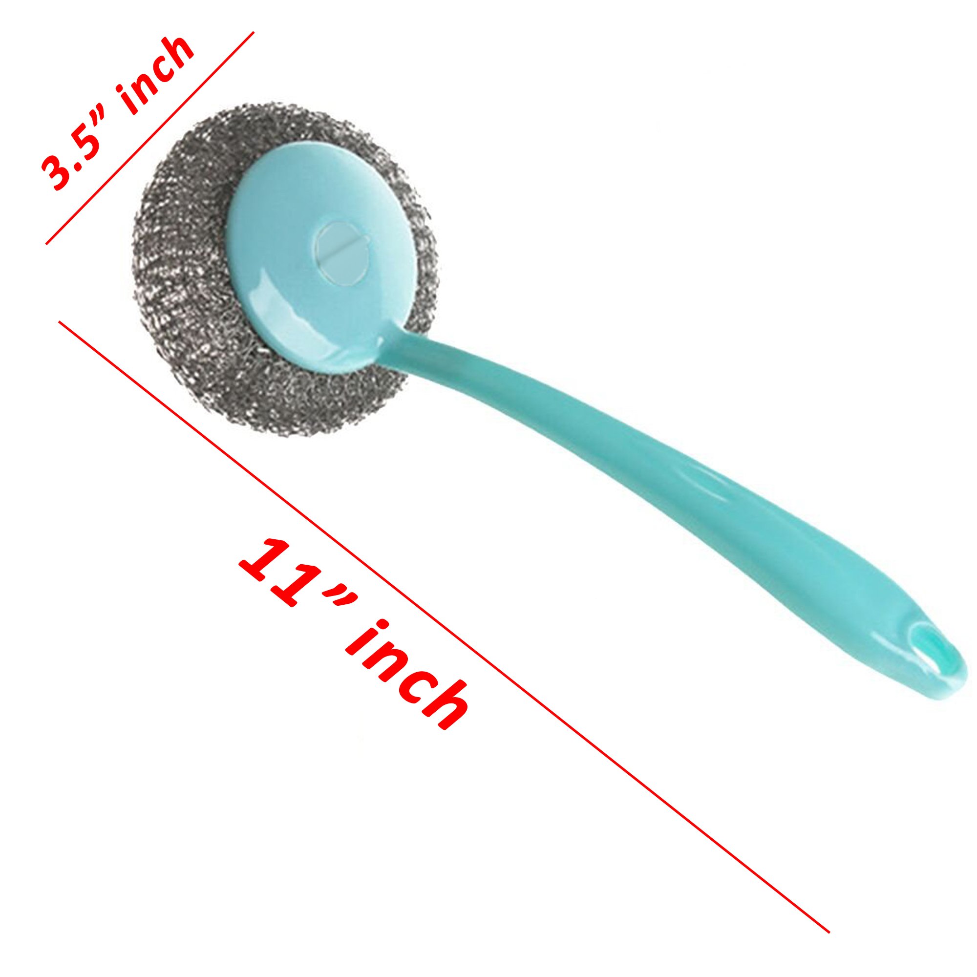 • Plastic handle provides a comfortable and secure gripping. Built in a hanging hole to keep dry and clean in daily use. Round pad, stainless steel ball, non-scratches, make you more flexible in kitchen.