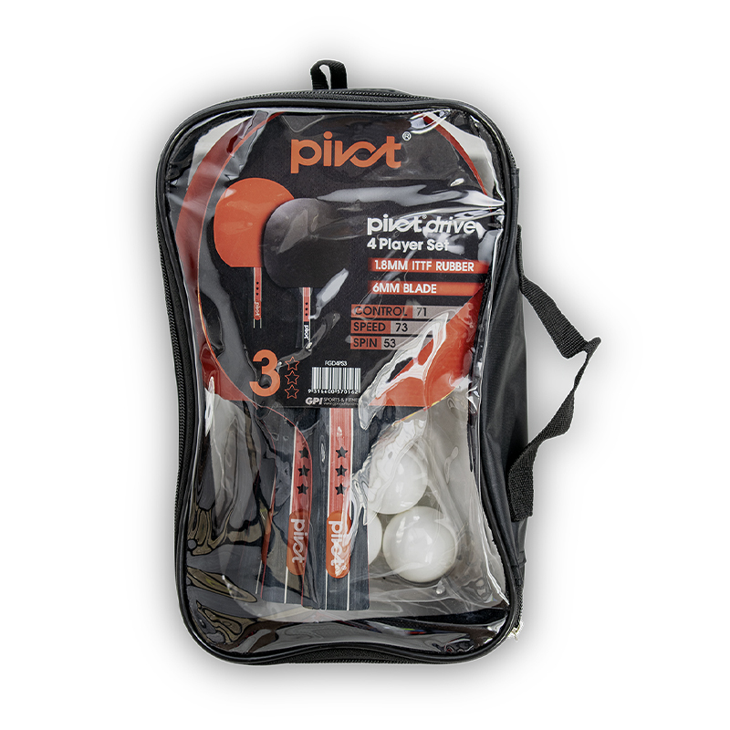 1 x Pivot Drive 3 Star 4 Player Table Tennis Set w/ 4 Bats/3 Balls