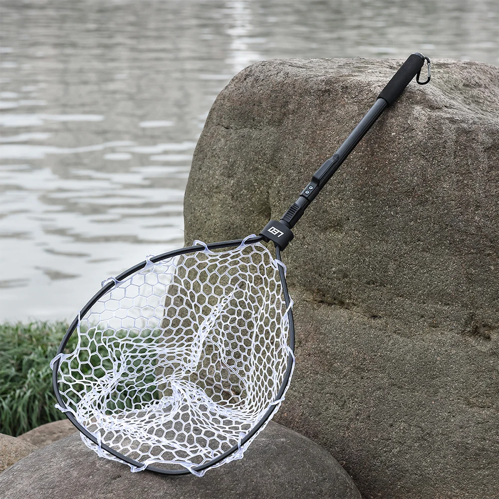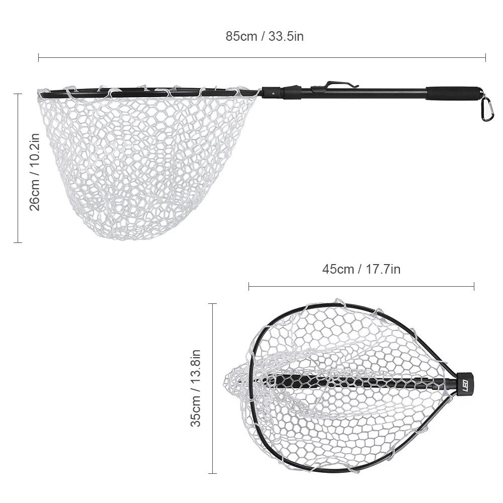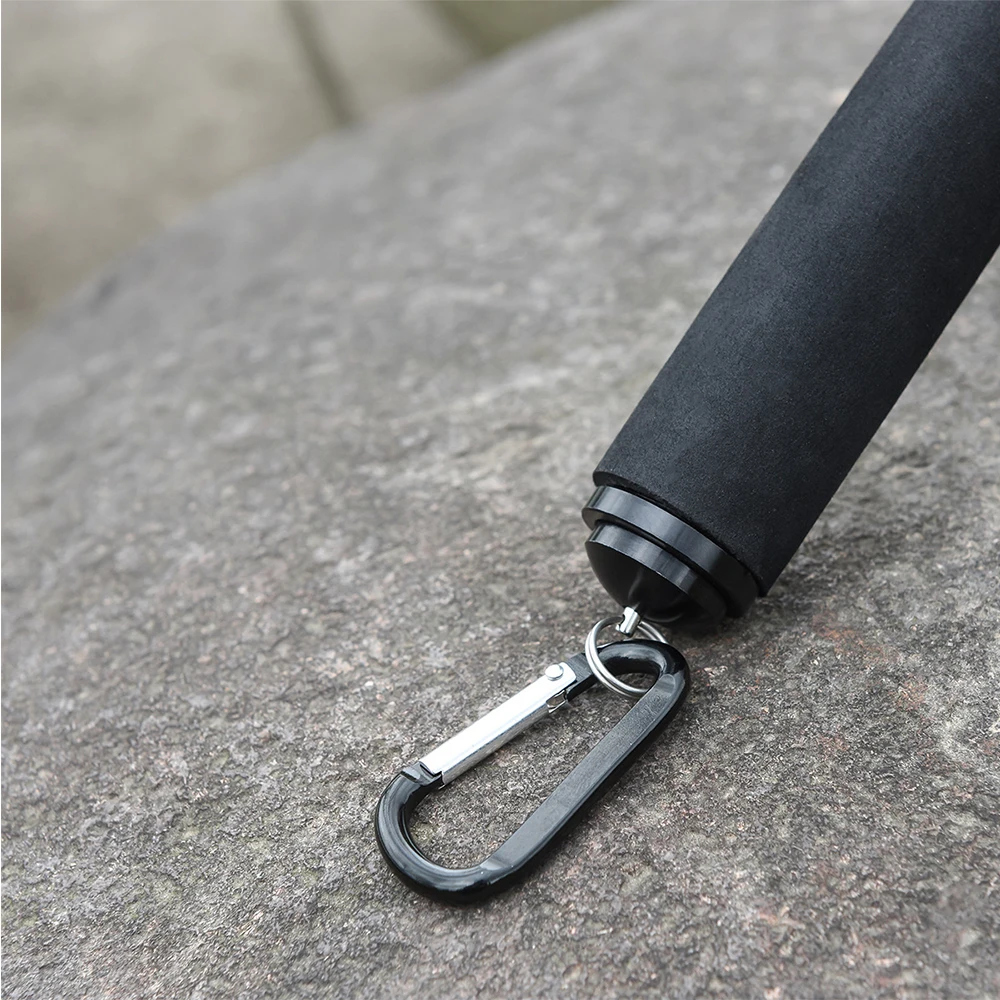 Metal carabiner clip and plastic clip for attaching your fishing gear.
