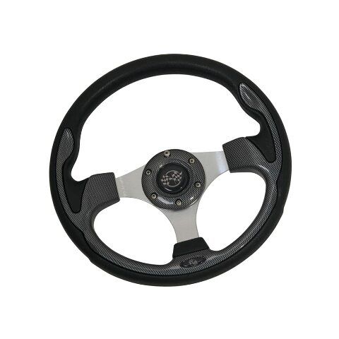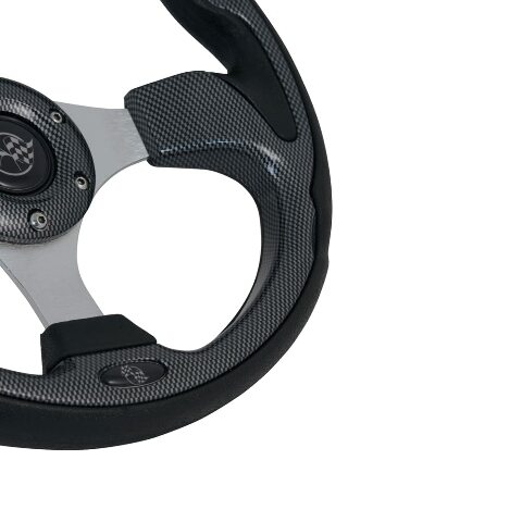 - UNIQUE DESIGN: Sporty 3-spoke design with rivet-accented checkered flag motif at center (horn button is decorative and nonfunctional)