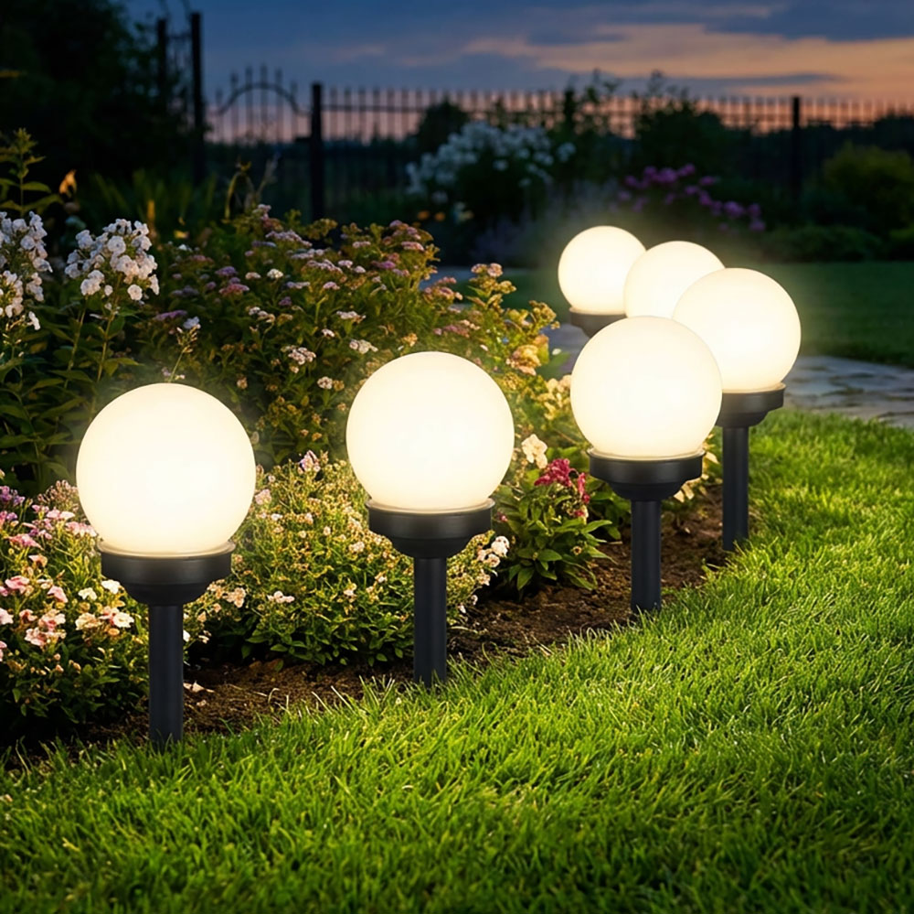 Solarkugel Außenleuchte Gartendeko LED Balkonleuchte Erdspieß weiß 10 cm 5er Set