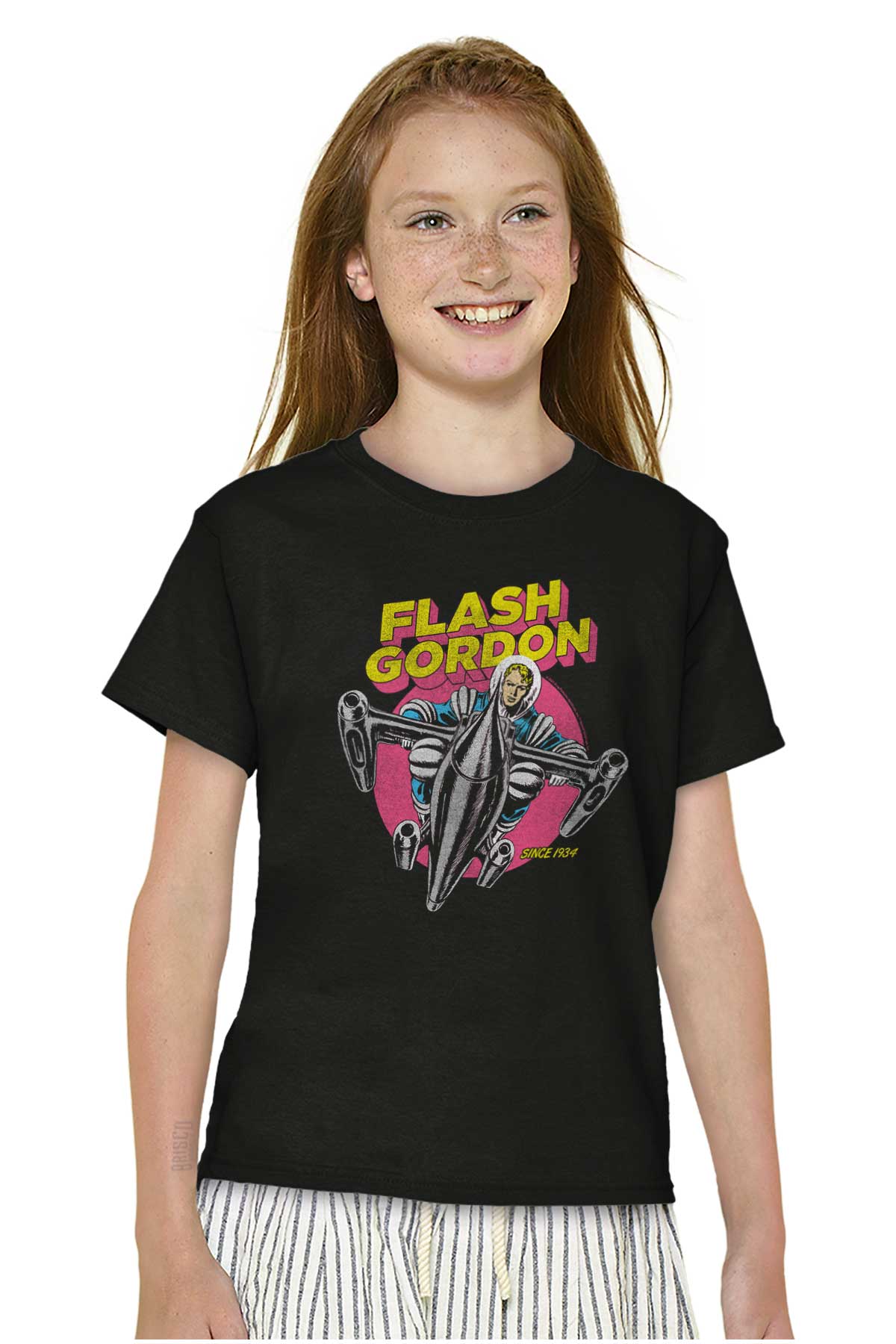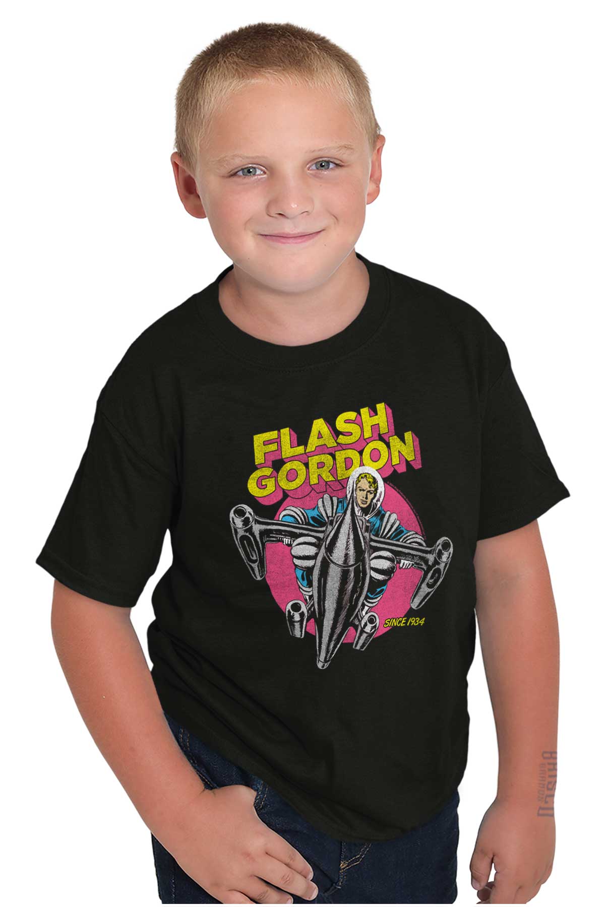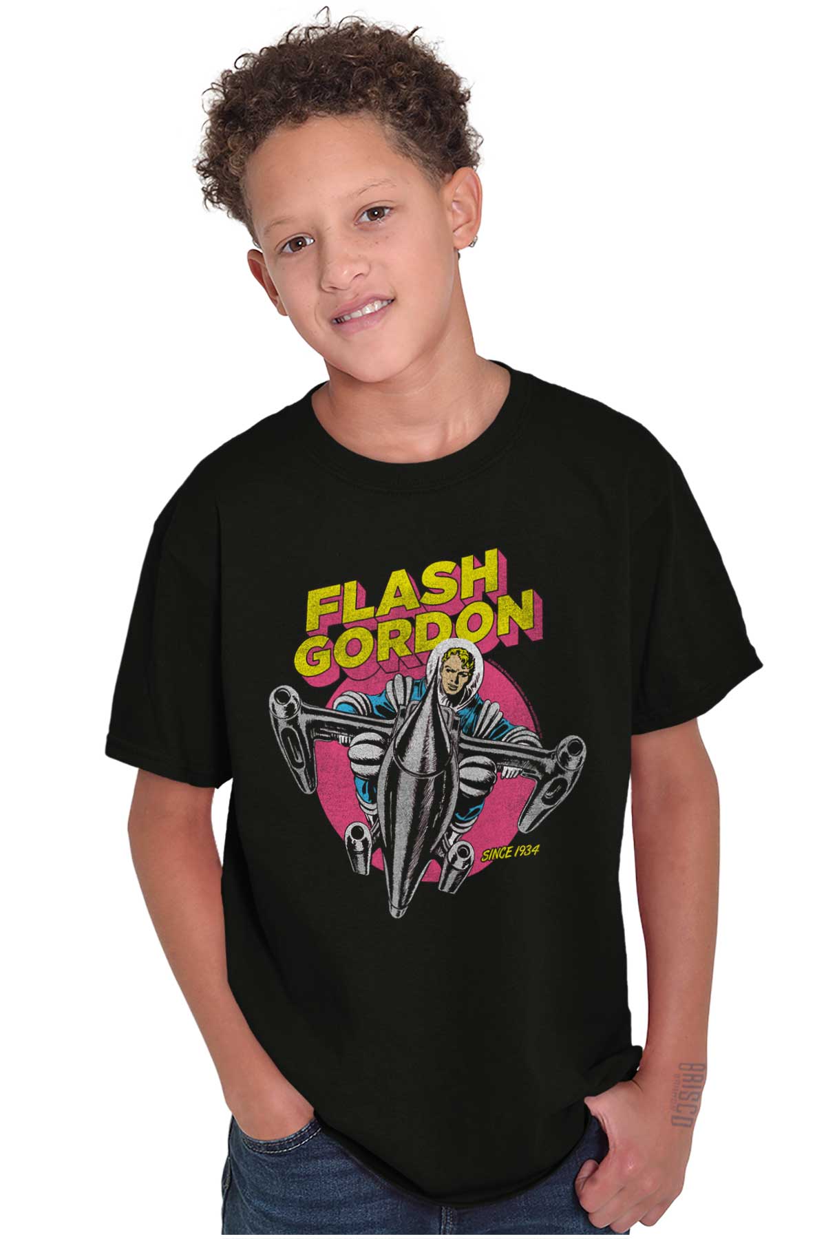 Your child will love this graphic tee from Brisco Brands! Soft, comfortable and designed to last, this casual tee will become a favorite in their wardrobe. This classic style tee shirt is made 100% midweight cotton fabric for breathability and durability. The quality printed graphic is stylish and fun. It features a seamless double needle crew neck collar and double-needle sleeve and bottom hems, so it maintains it's shape wear after wear and wash after wash. This short sleeved graphic tee adds stylish fun to your casual outfits, and can easily be paired with a sweater or zip up hoodie. Perfect for gym class, playing after school or Saturday morning cartoons on the couch. The quality printed graphic is a perfect addition to your child's Flash Gordon shirt collection! Makes a great gift for the children and grandchildren in your life! All of Brisco Brands shirts are professionally printed in the USA using contemporary technology.