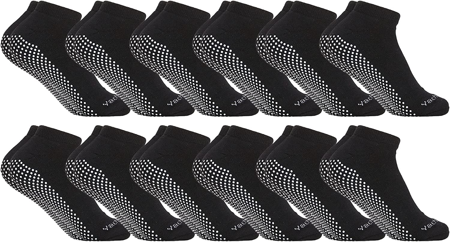 Women's Non Slip No-Skid Socks with Grips, 97% Cotton, For Hospital, Yoga, Pilates, Barre, Grippy Ankle Sock (12 Pairs Black) ![]() ![]() ![]() ![]() ![]() ![]() ![]() ![]() ![]() ![]() ![]() Product Description