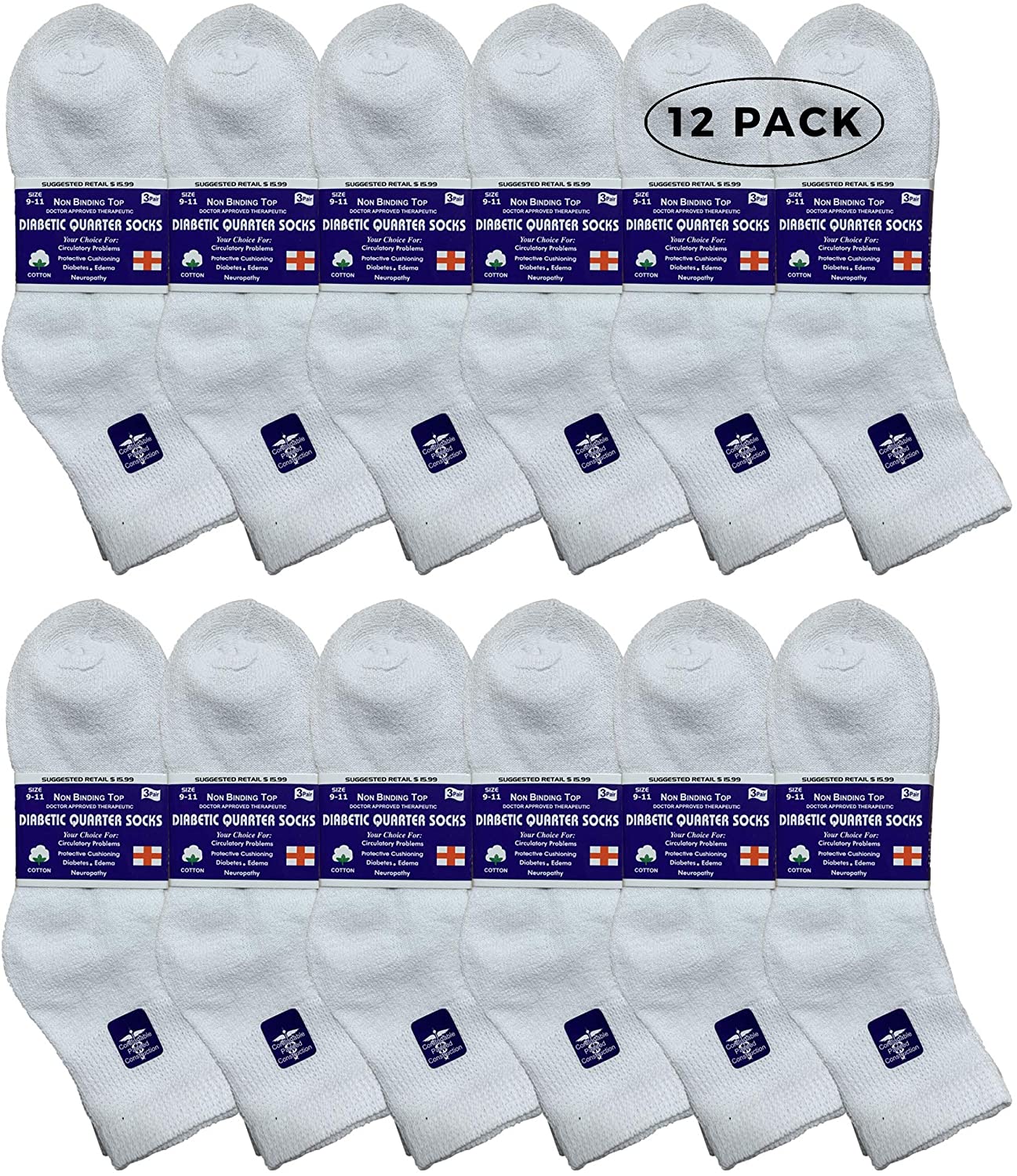 Yacht & Smith Loose Fit Non-Binding Soft Cotton Diabetic Crew And Ankle Socks, Bulk Value Pack (12 Pack White Ankle, Women (9-11)) ![]() ![]() ![]() ![]() ![]() ![]() ![]() Product Description