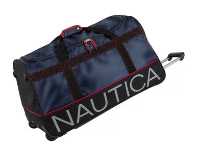 · Description: Durable fabric has heavy duty double zipper closures with nylon pulls ~ Reinforced carrying straps have a two-snap closure, along with a top hand strap secured with branded grommets ~ Sturdy stationary wheels are guided with an 11 Inch retractable handle in a hidden top zippered compartment ~ Large exterior zippered opening to a compartment that sits inside the bag and an interior zippered compartment that runs the entire length of the flap ~ Soft, crushable body folds flat onto the rigid reinforced bottom for low-profile easy storage ~ Polymer rails run along the bottom of the bag which prevents scuffing ~ Brand name is featured on the exterior and interior flap