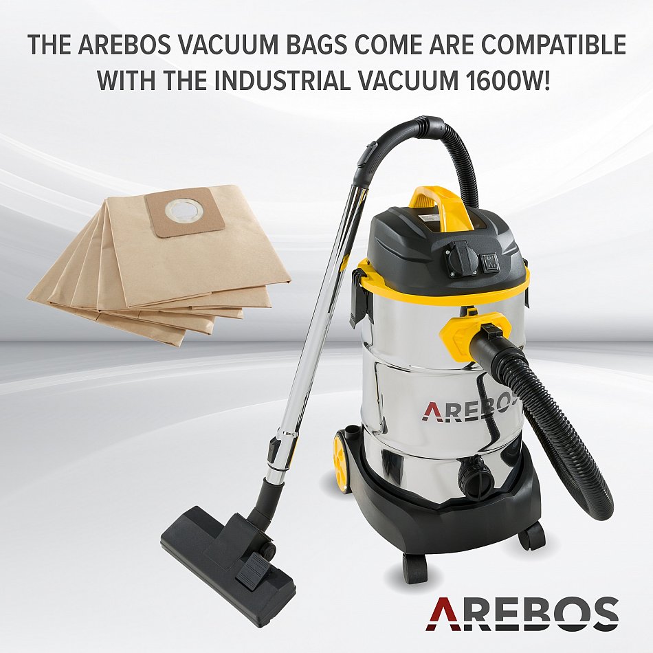 5x sacchetti per aspirapolvere per aspirapolvere industriali AREBOS 1600 W