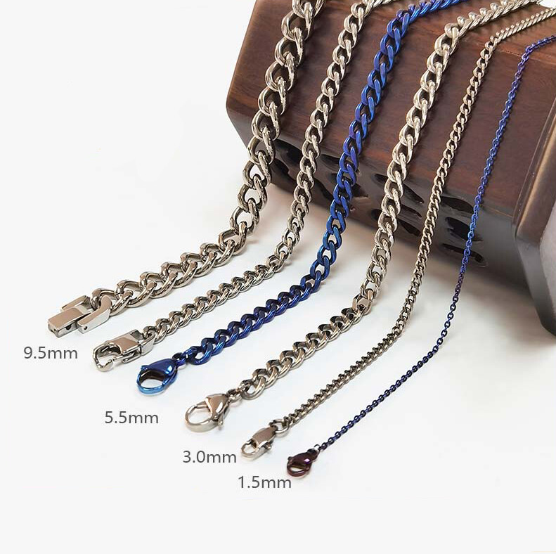 1.5mm/2.8mm/5.5mm/7mm/9.5mm Unisex Anti-allergy Pure Titanium Ti Necklace Chain
