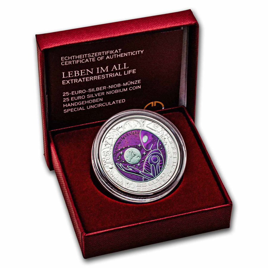 This unique Silver and Niobium coin would be a great gift for anyone interested in extraterrestrial life. Add this Silver/Niobium Extraterrestrial Life coin to your cart today!