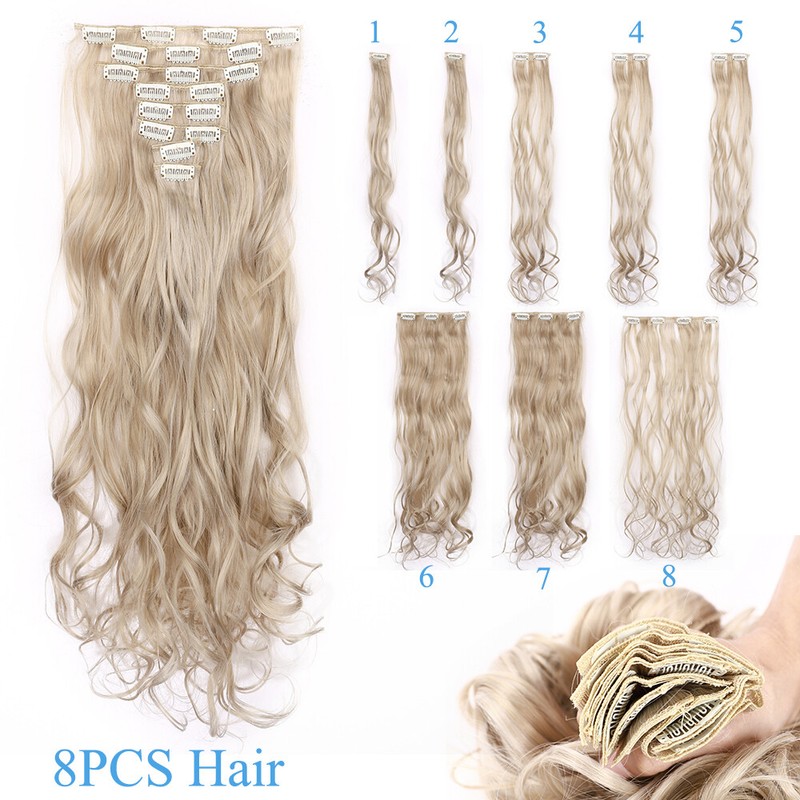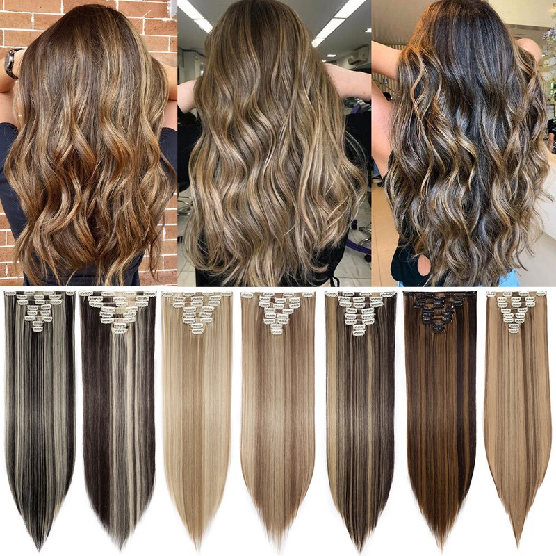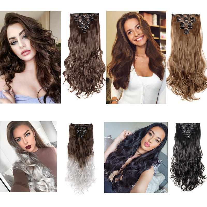High Quality Full Hairpieces Clip on Hair Extensions - Hair Extensions are Made of high-quality synthetic fibers, it feels soft and looks very Natural and looks like Human Hair.High Quality metal clips are well sewn into each weft firmly, comfortable and durable, the hair clips are easy to put in and take off as you want.