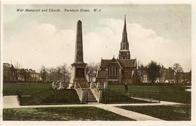 PRINTED POSTCARD OF TURNHAM GREEN WAR MEMORIAL, (NEAR CHISWICK - LONDON), MIDDLESEX.
