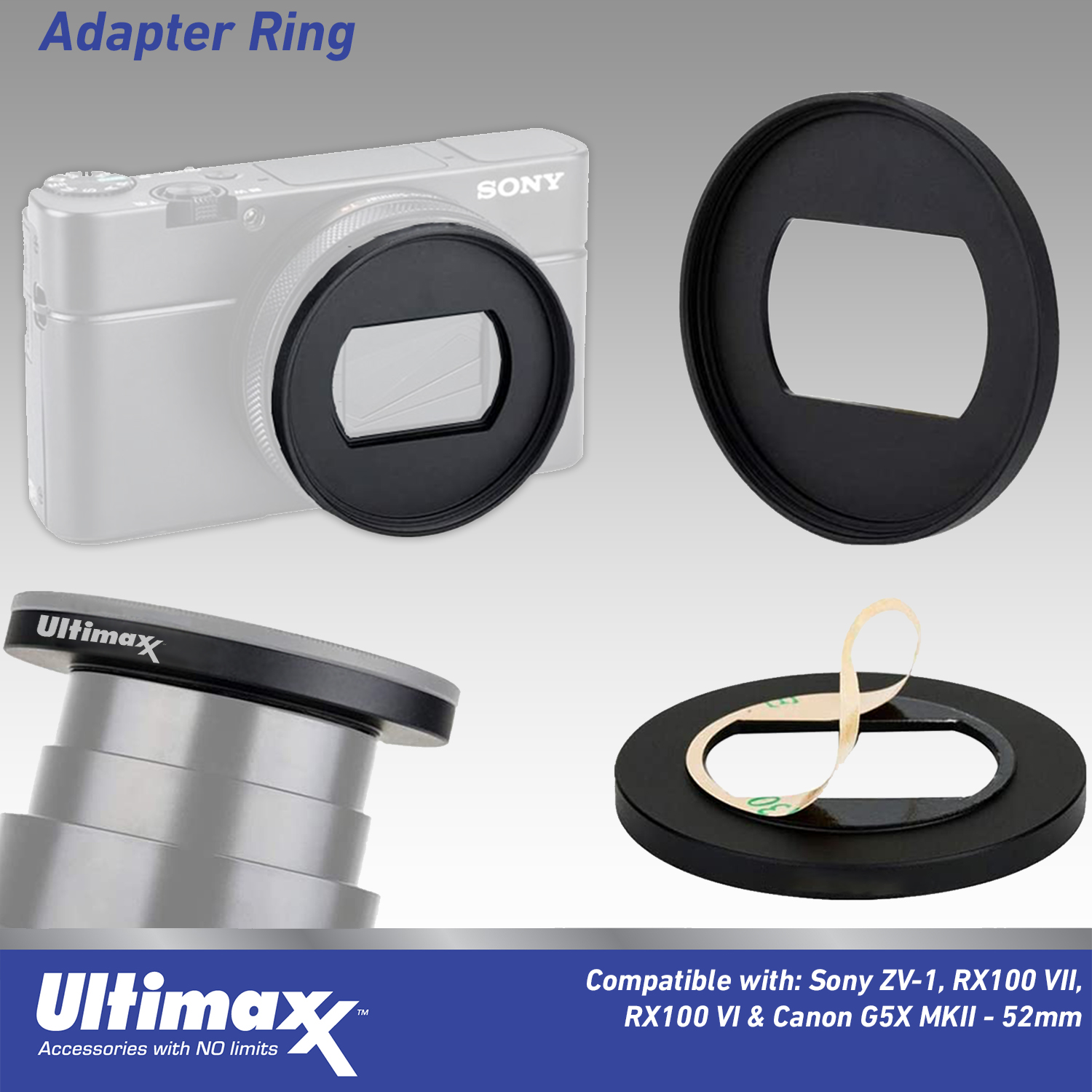 - Ultimaxx Adapter Ring for Sony ZV-1, ZV-1 II, RX100 VII, RX100 VI, Canon G5X MKII - 52mm