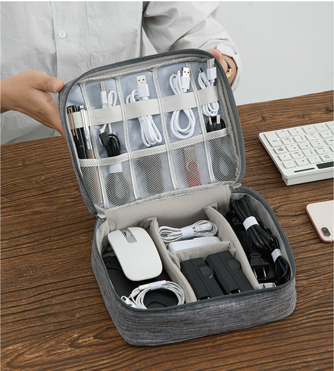 SAFETY AND DURABLE: Our electronics beauty organizer and cosmetic cable bag are equipped with high-quality canvas material which is really sturdy. It provides the ultimate safety of the items in your bag