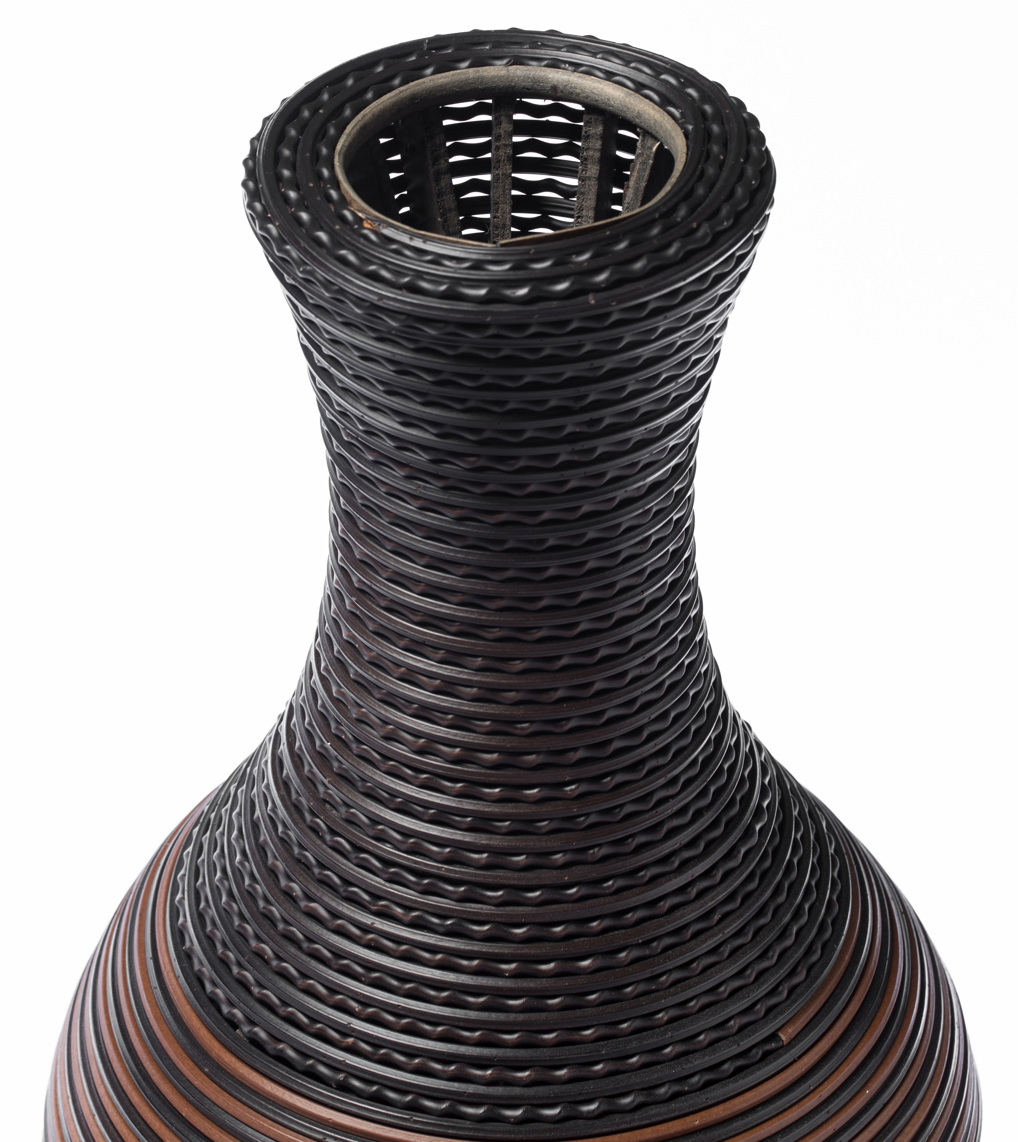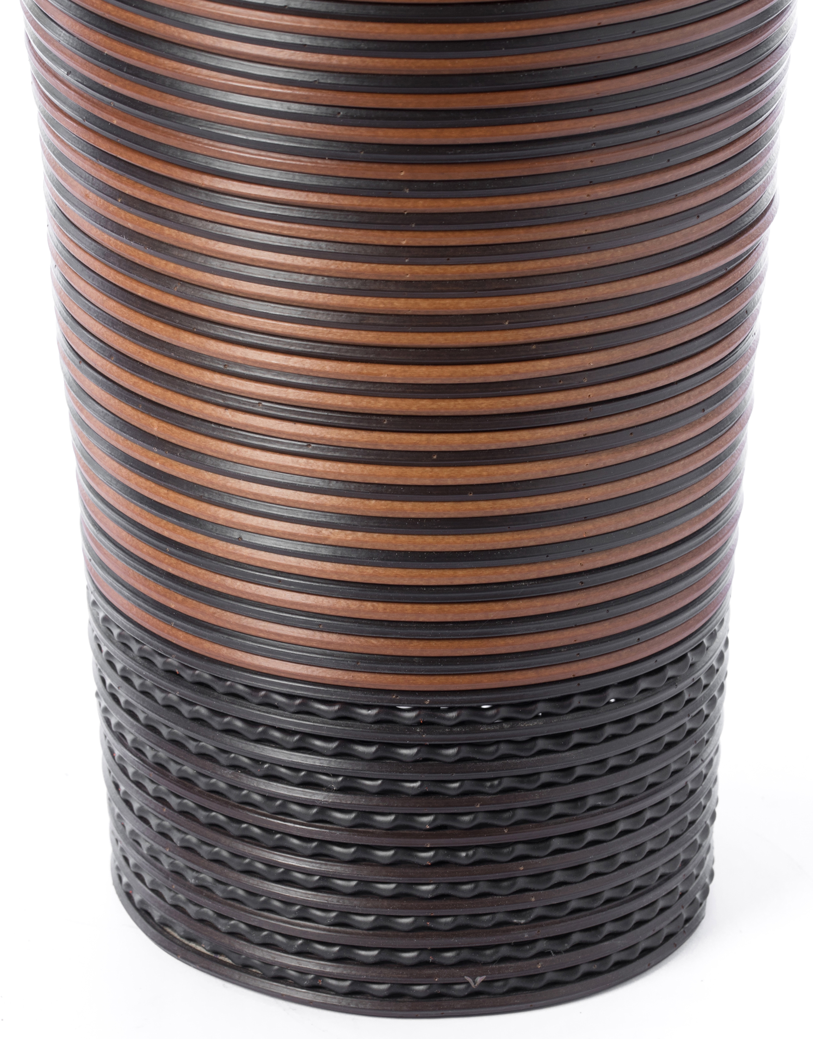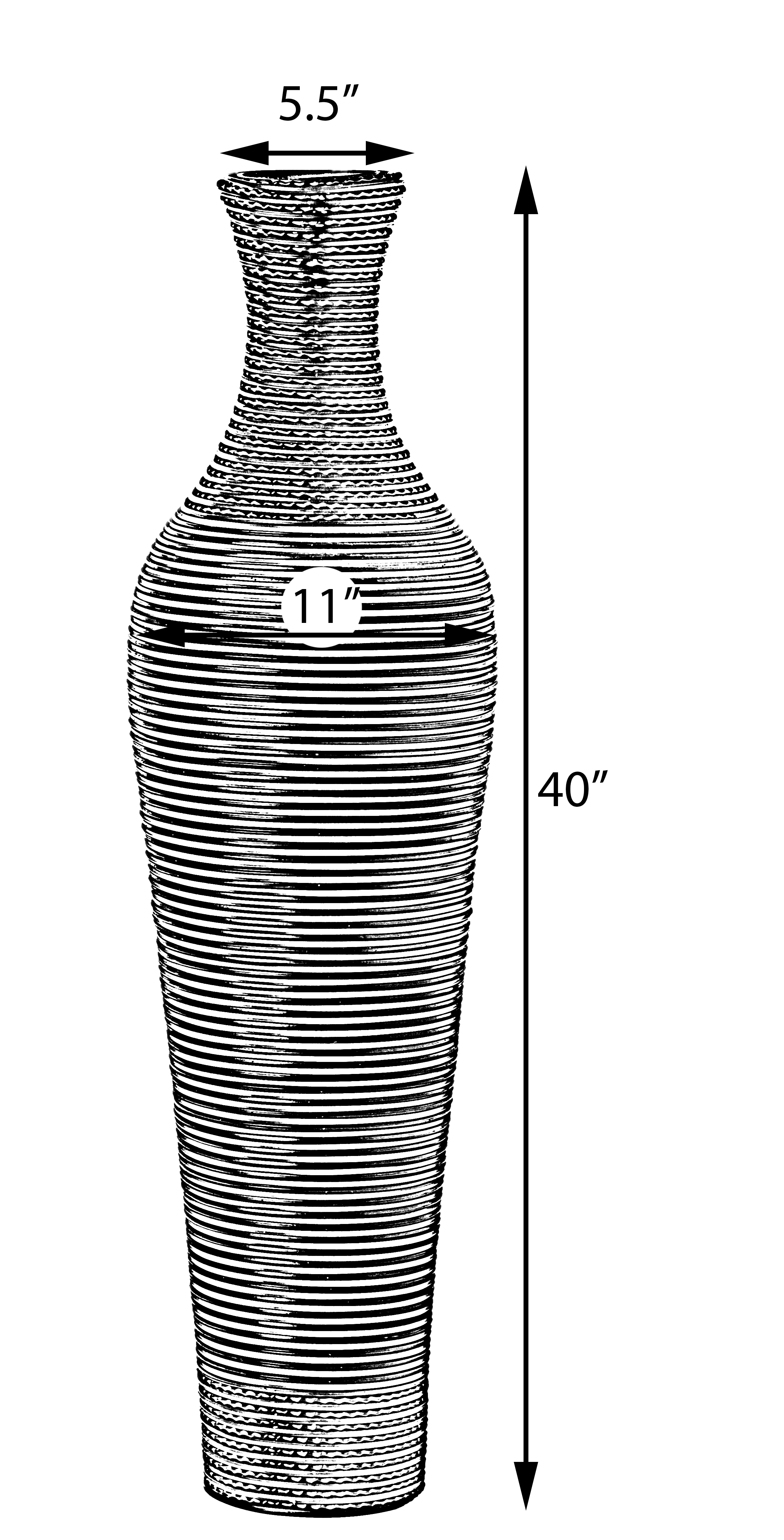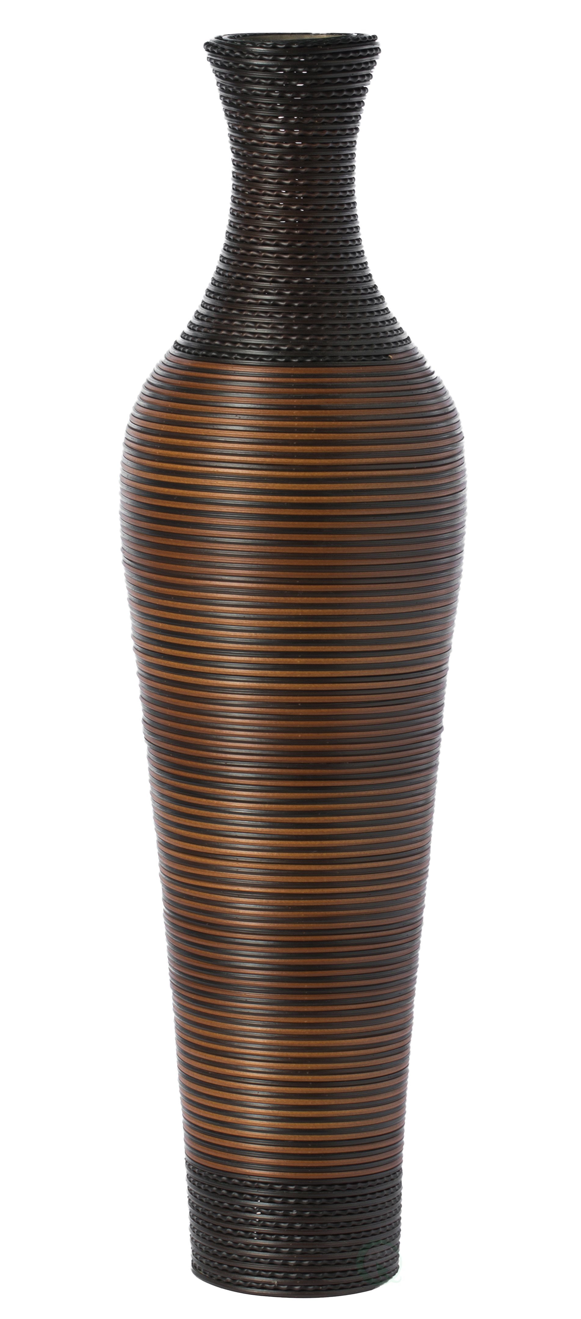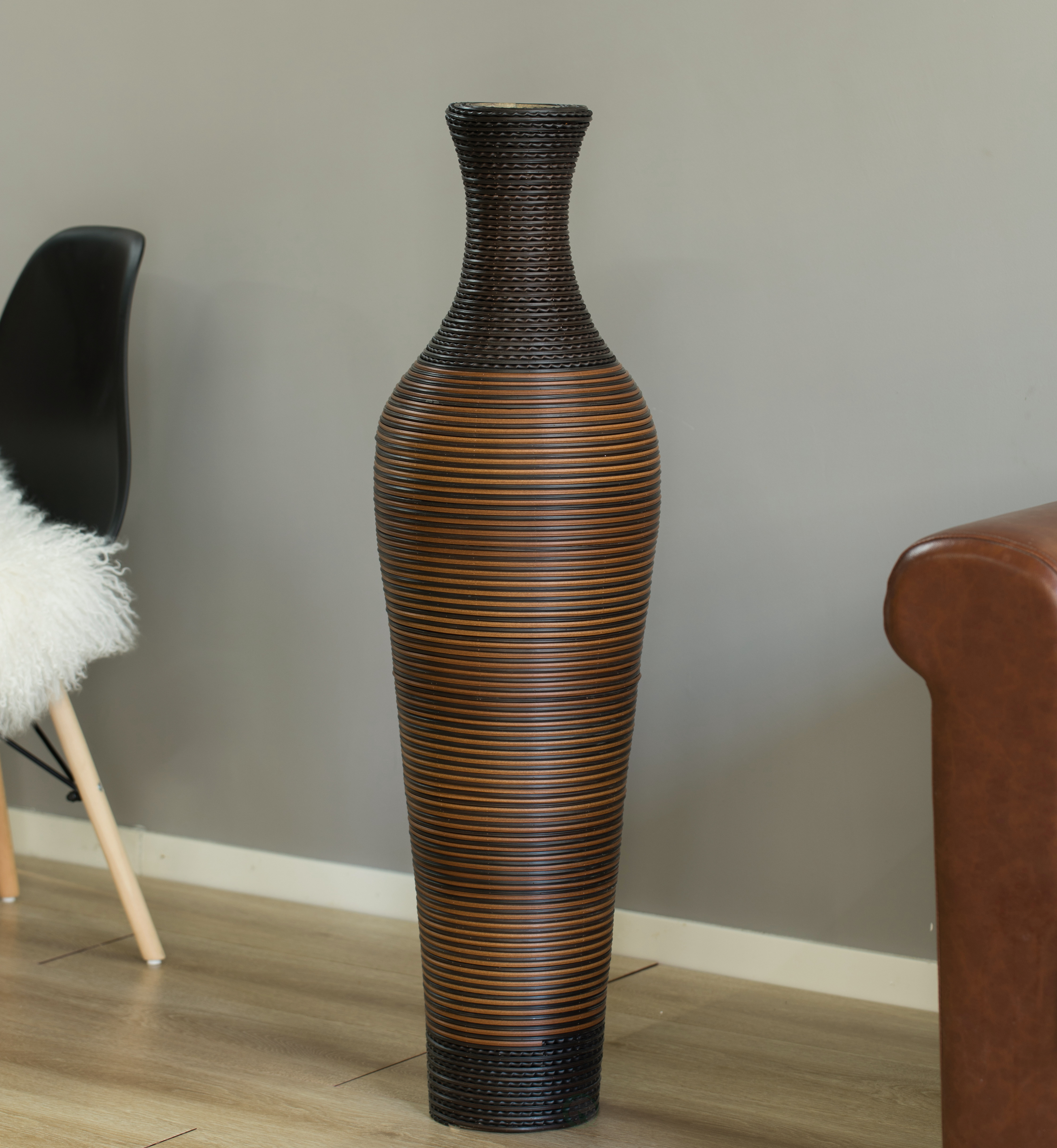 This brown tall floor vase is a decorative, designer, modern piece that is both sturdy and elegant. It is made of polyvinyl chloride, a type of plastic that is known for its durability and resistance to water and other liquids. The brown color of the vase gives it a warm and inviting look, while its tall stature adds a touch of sophistication and elegance to any room. This vase can be used to hold dyed decor branches, and dried long wispy grass bundles, and is also suitable for artificial flower decorations, or can even be used as a modern umbrella stand! It can be placed in a variety of settings, from a formal living room, and homey entryway to a cozy den, and its sleek design will complement any decor. The PVC material makes it easy to clean and maintain, ensuring that it will remain a beautiful addition to your home for years to come. By adding this vase to your lovely home, you will create a natural, elegant, modern, neat, or exotic atmosphere that will invigorate and refresh your beloved indoor space.