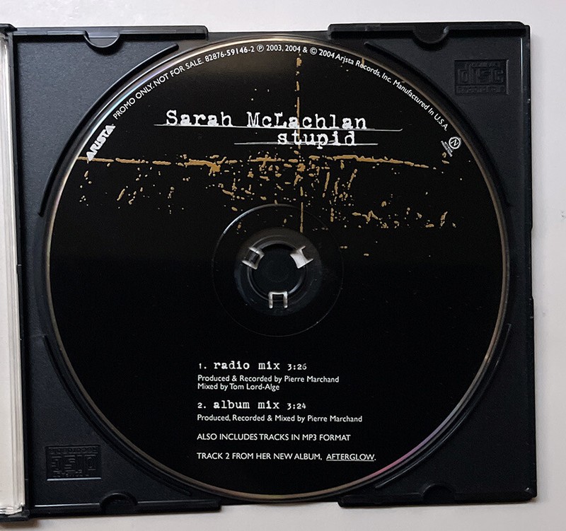 Up for your consideration is the 2004 promotional only release from Sarah McLachlan entitled Stupid. This CD was issued without artwork.