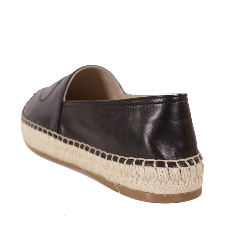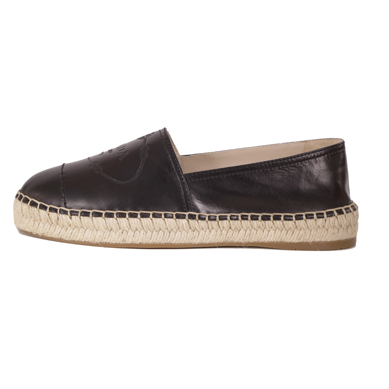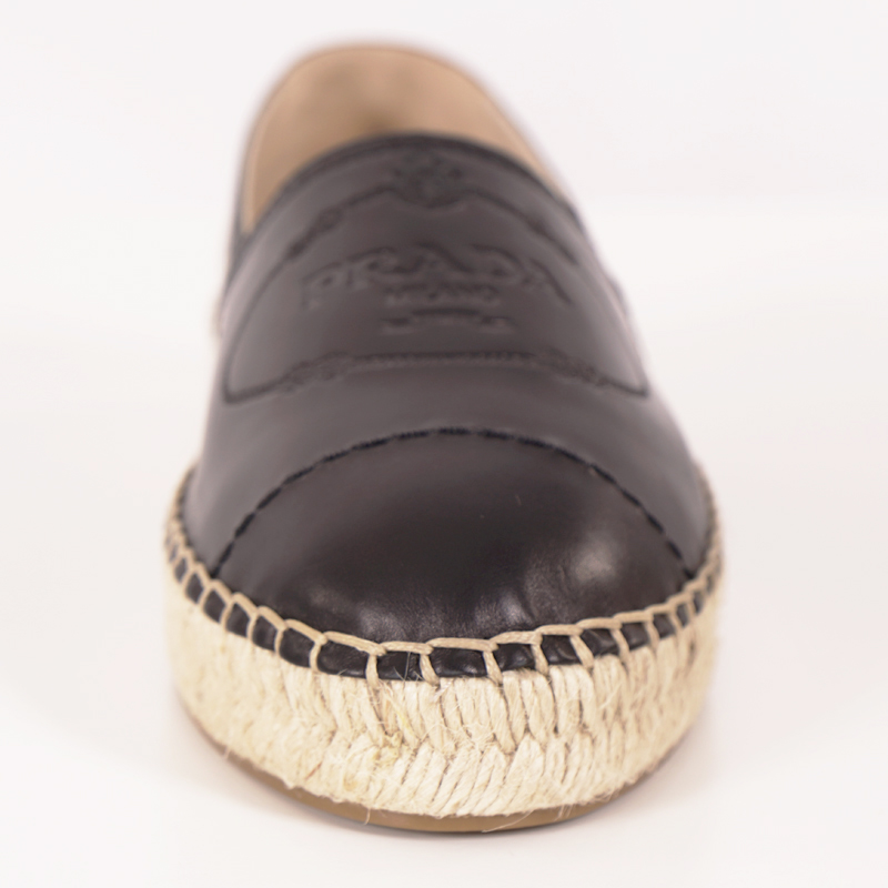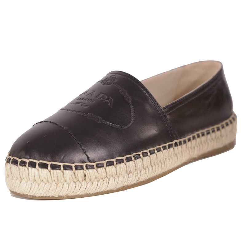 NEW $950 PRADA Woman's Black Classic Logo-Embossed Leather Espadrilles