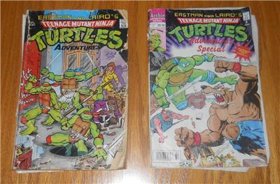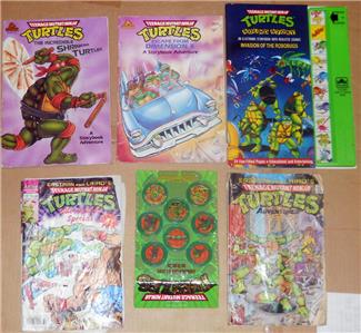 Lot of vintage TMNT comics, electronic story book and stickers.