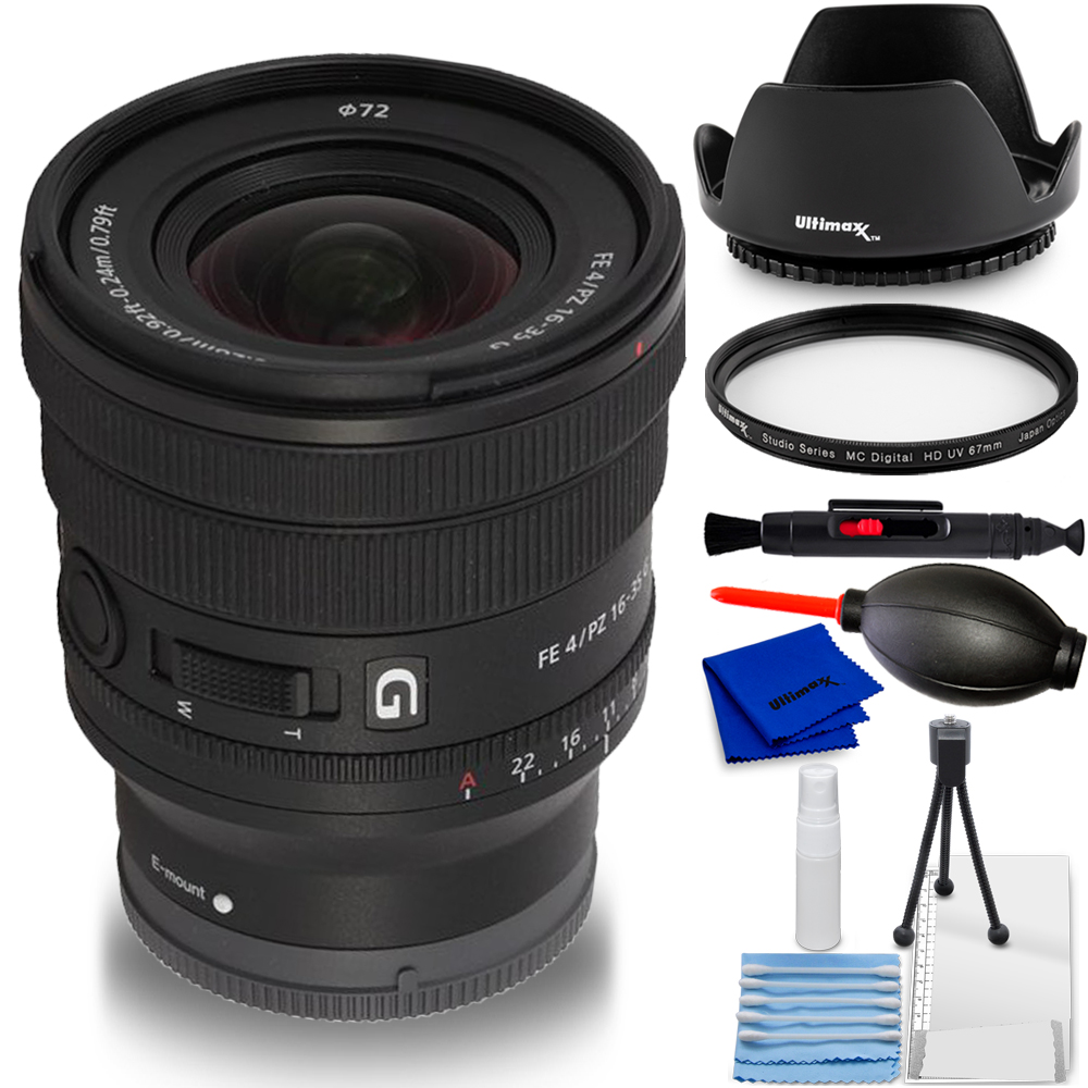 A compact design with superb optics and a power zoom function makes the Sony PZ 16-35mm f/4 G an ideal choice for all types of creators, whether that means you shoot video, stills, or both. This ultra-wide lens is among the lightest in its class and the constant f/4 aperture strikes an ideal balance that is bright enough for available-light shooting while remaining portable for all-day shoots.