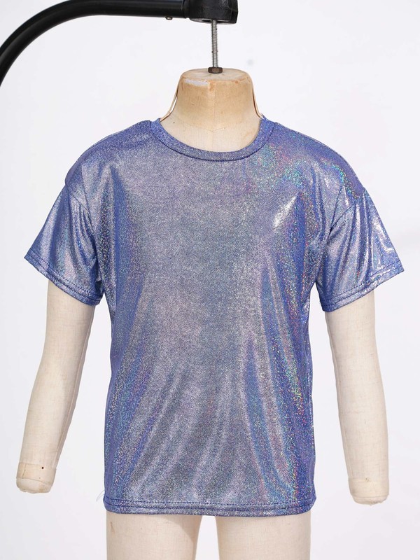 Kids Girls and Boys Metallic Shiny T-shirt Sparkly Jazz Dance Tops.