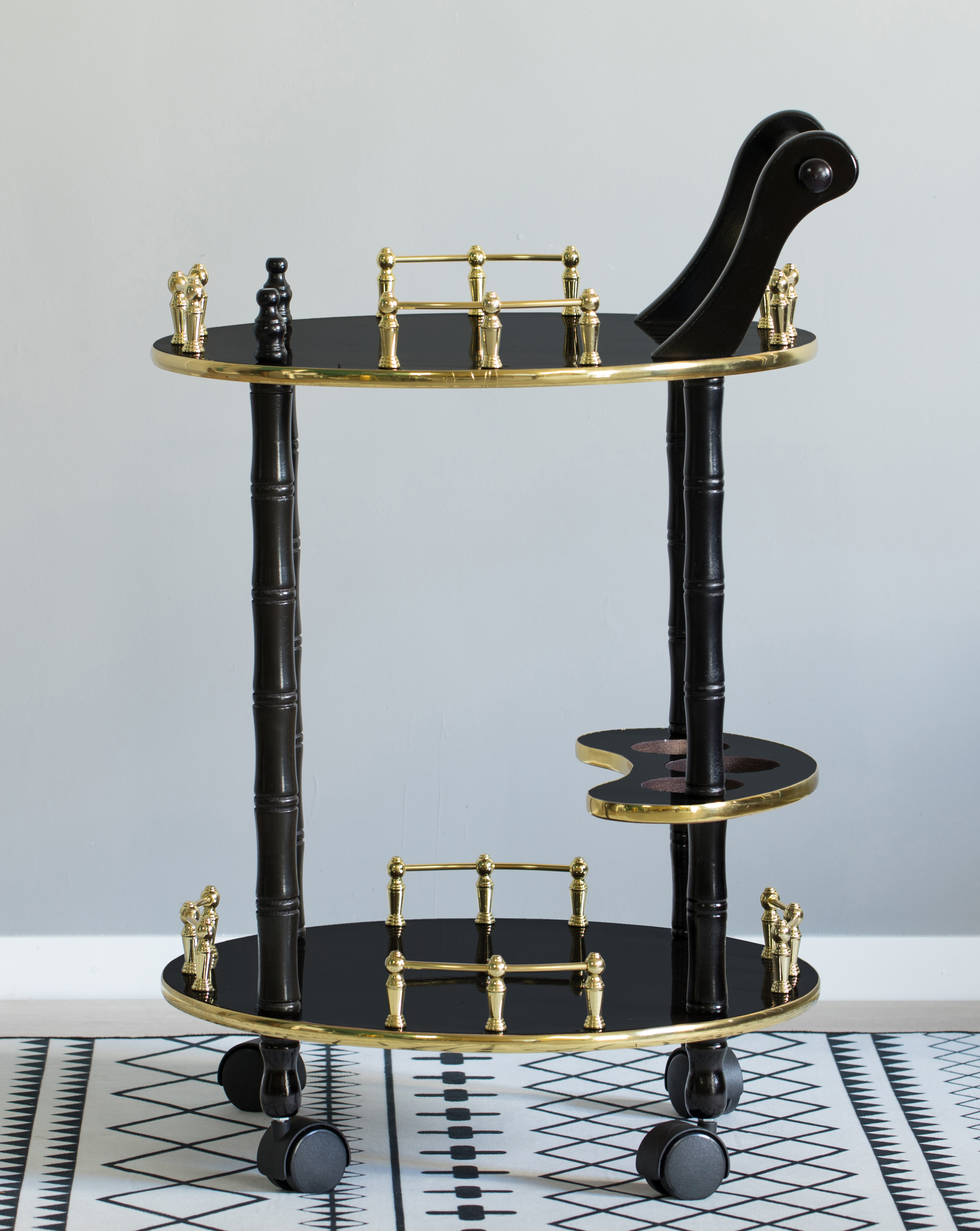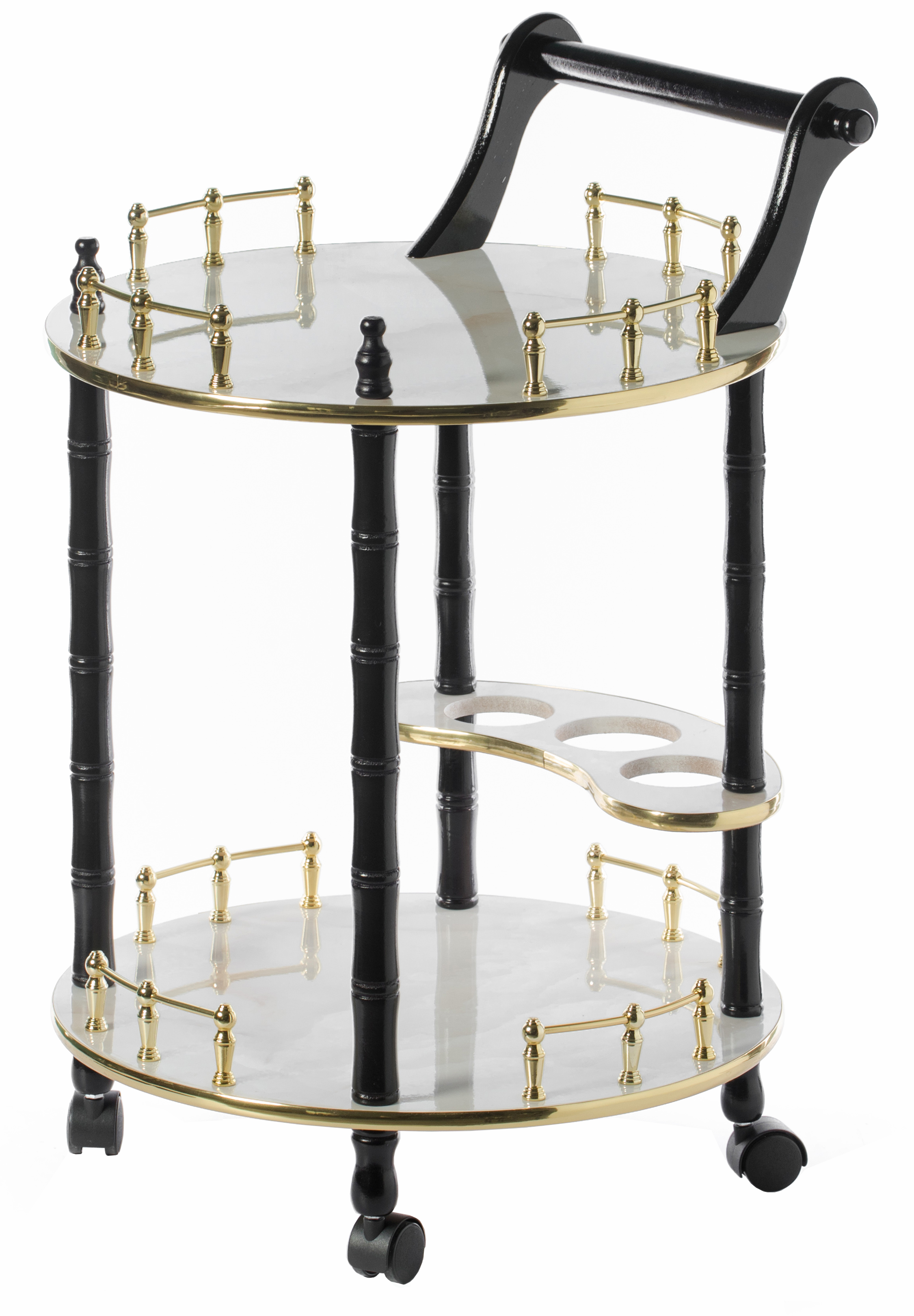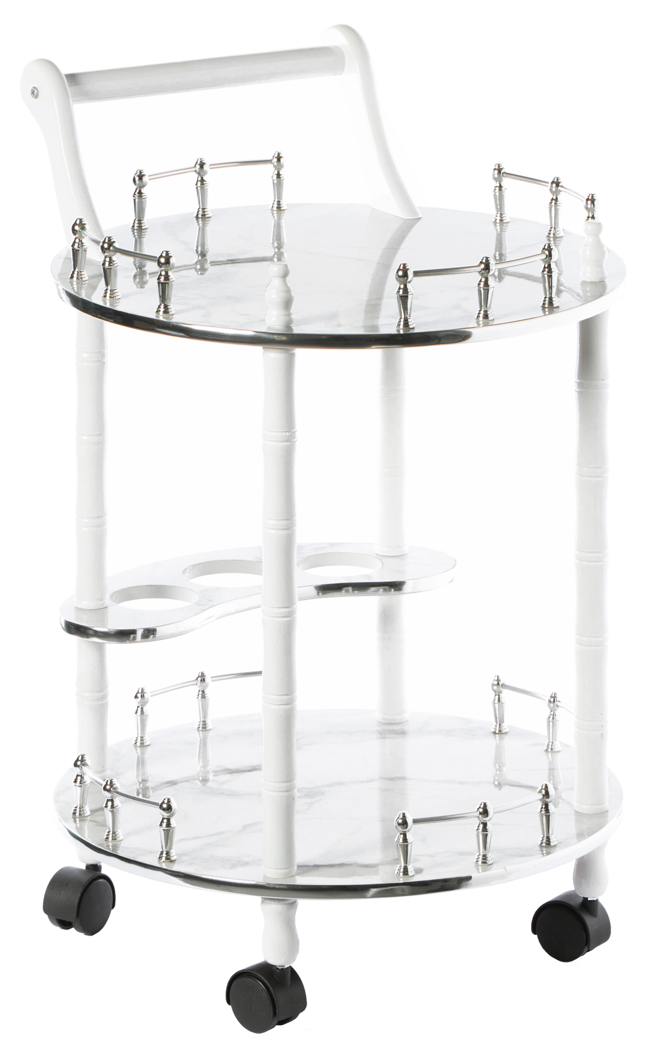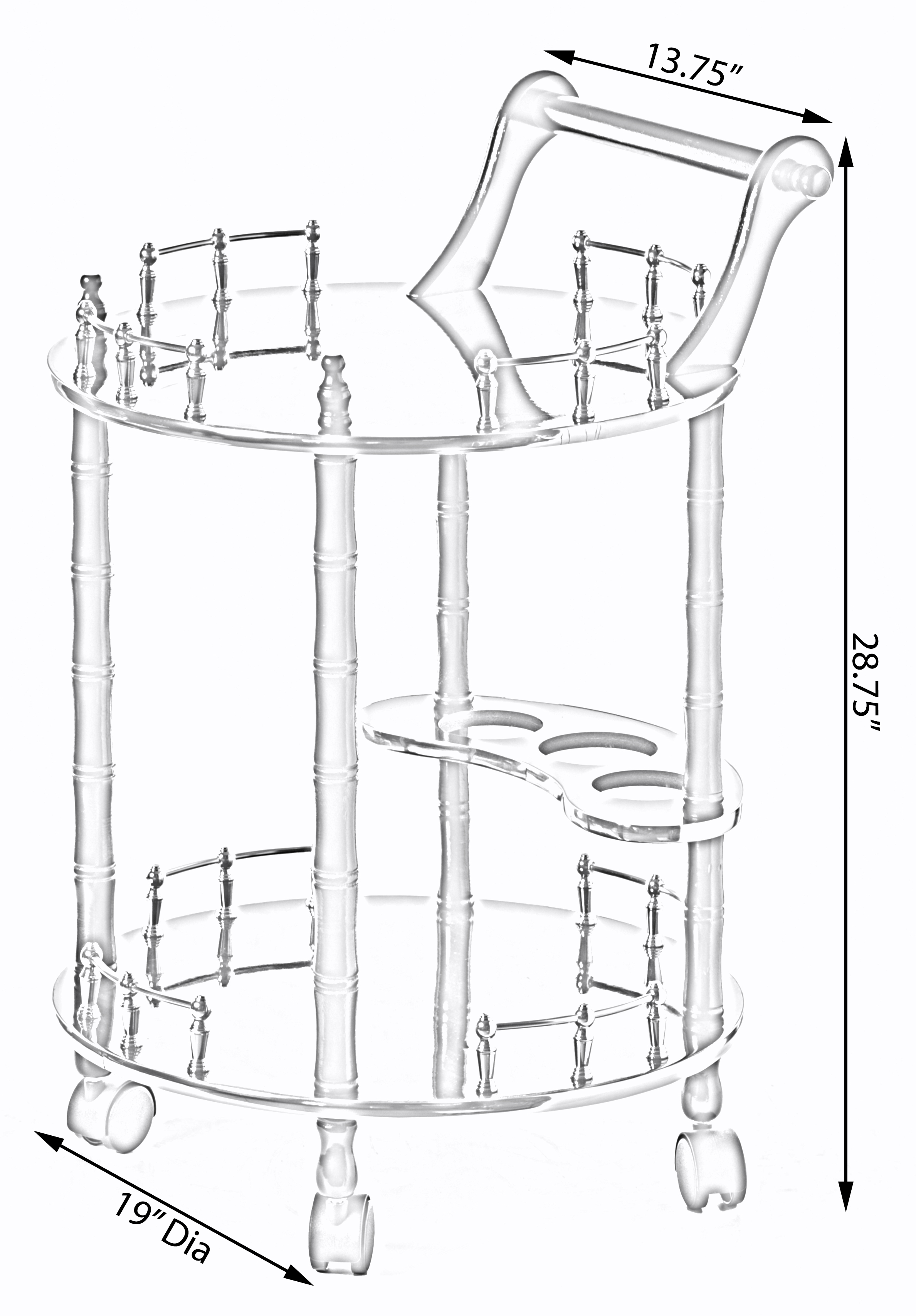 Add a modern touch to your dining room with this serving cart. Composed out of durable wood that is sturdy enough for longtime use. Can be used as a serving cart, coffee table, dining cart, wine cart, or decorative end table. Ideal for kitchen, dining room, living room, bar, or hotel. Great for serving tea fruits, desserts, wine, whiskey tastings and dishes at your parties or family get-together. Can be used to display trinkets, flowers, glasses, and decanters. Featuring, safety guardrails around that will keep your items safe in place while rolling the cart. 3 built in wine bottle holders protect bottles from falling and colliding with each other. Handle and 4 rolling wheels allow you to easily move around the serving cart.