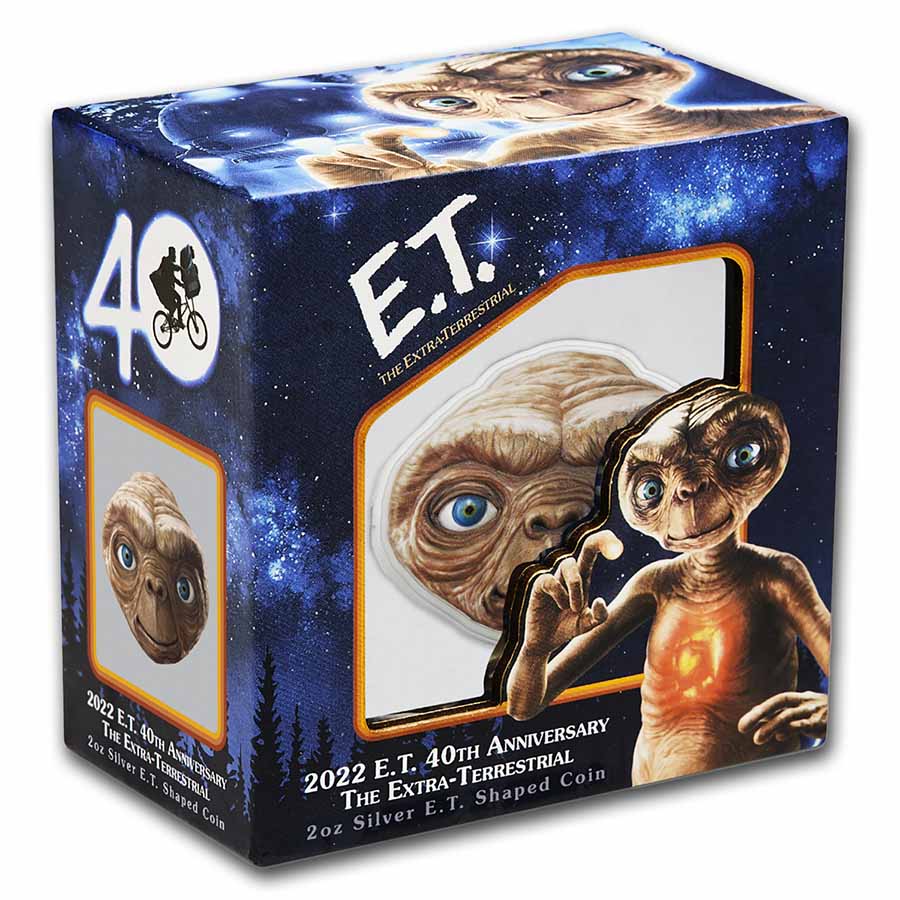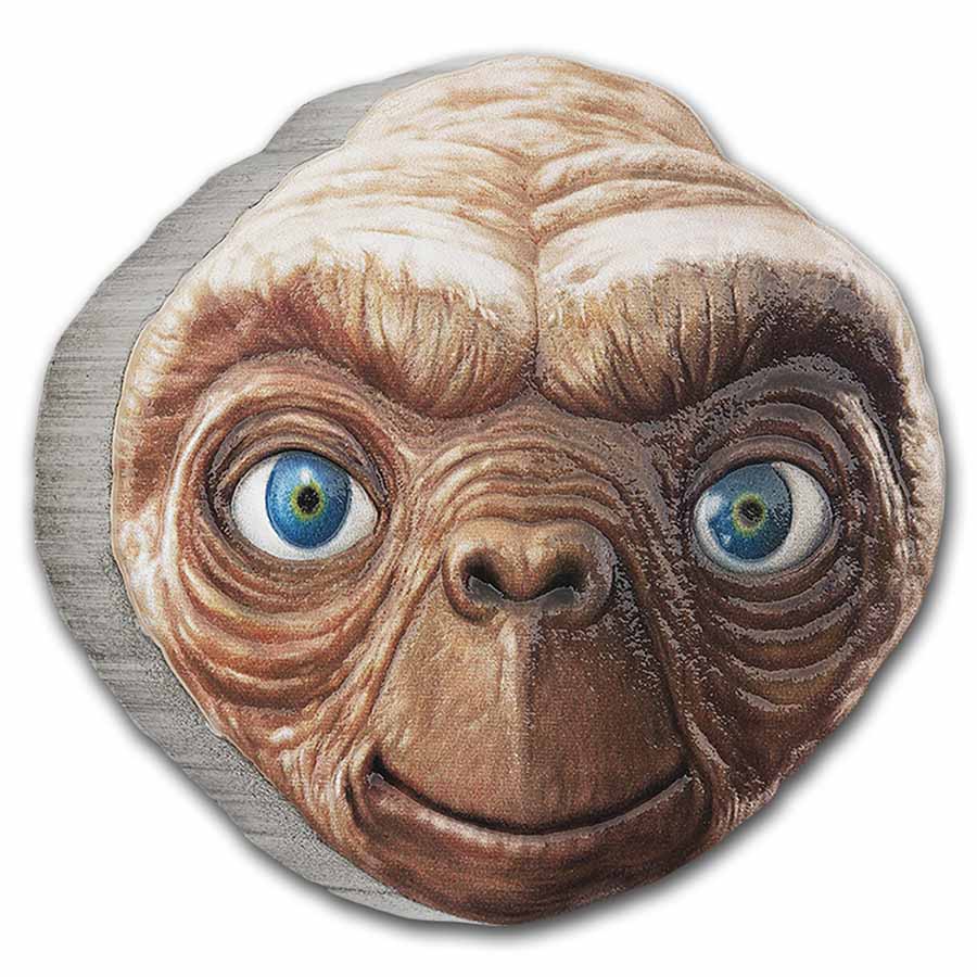 Add this 2022 2 oz Silver E.T. face shaped coin to your cart today!