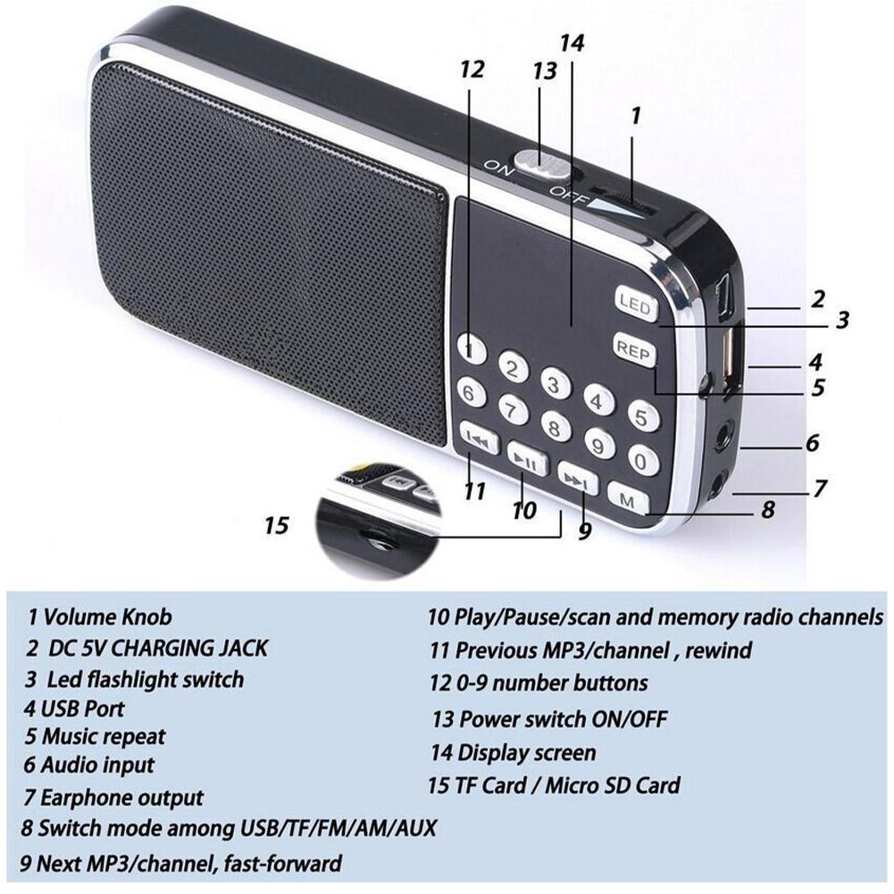L-088AM Hi-Fi Mini Speaker MP3 Audio Player Flashlight Amplifier Support FM Radio Micro SD TF Card Portable Speaker​