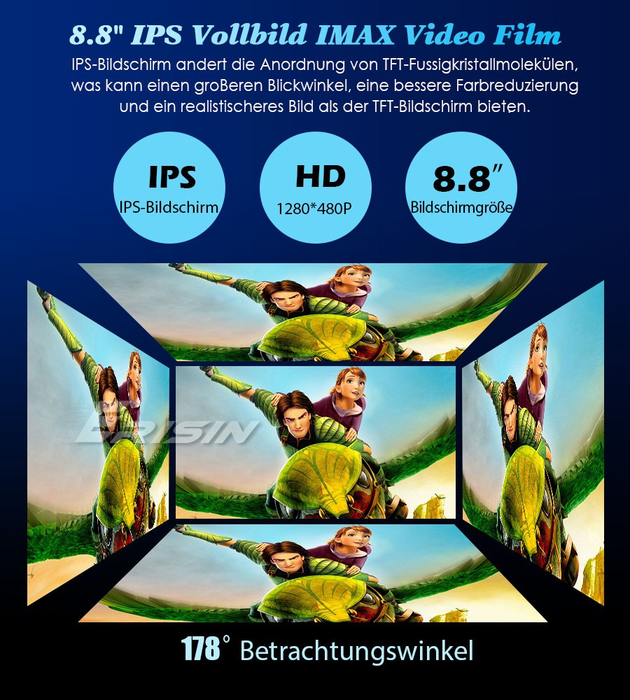 - 8.8 Zoll Ultrabreiter IPS-Bildschirm mit der Ultra-HD Auflösung von 1280*480 Pixel---unser einzigartiges Design.