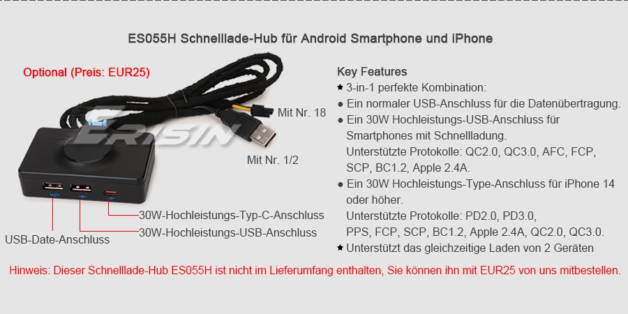 - Unterstützt erweiterte Funktionen über USB wie z.B. DAB-Box-, TPMS-Monitor-, Front-DVR-Eingang & Anzeige & Kontroll