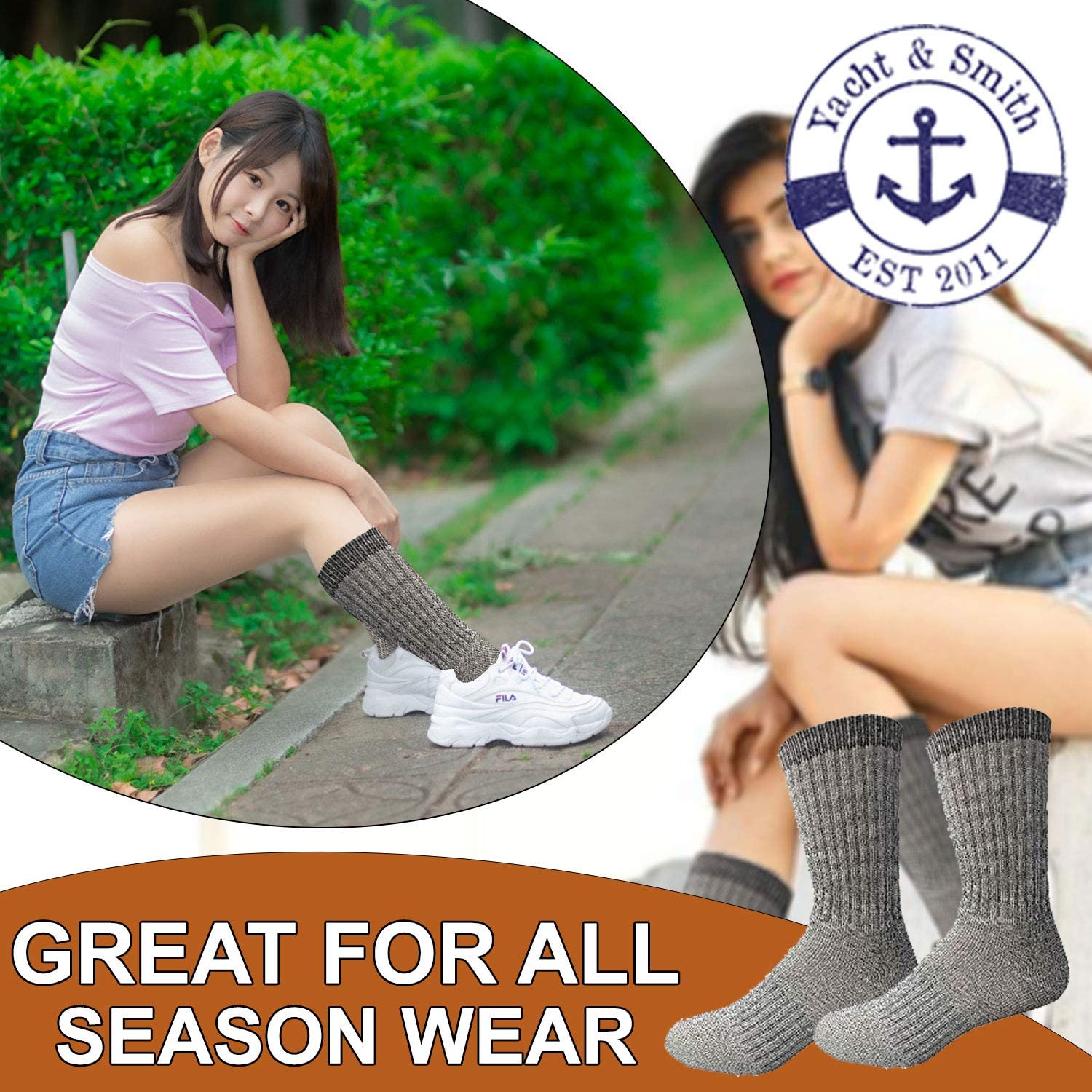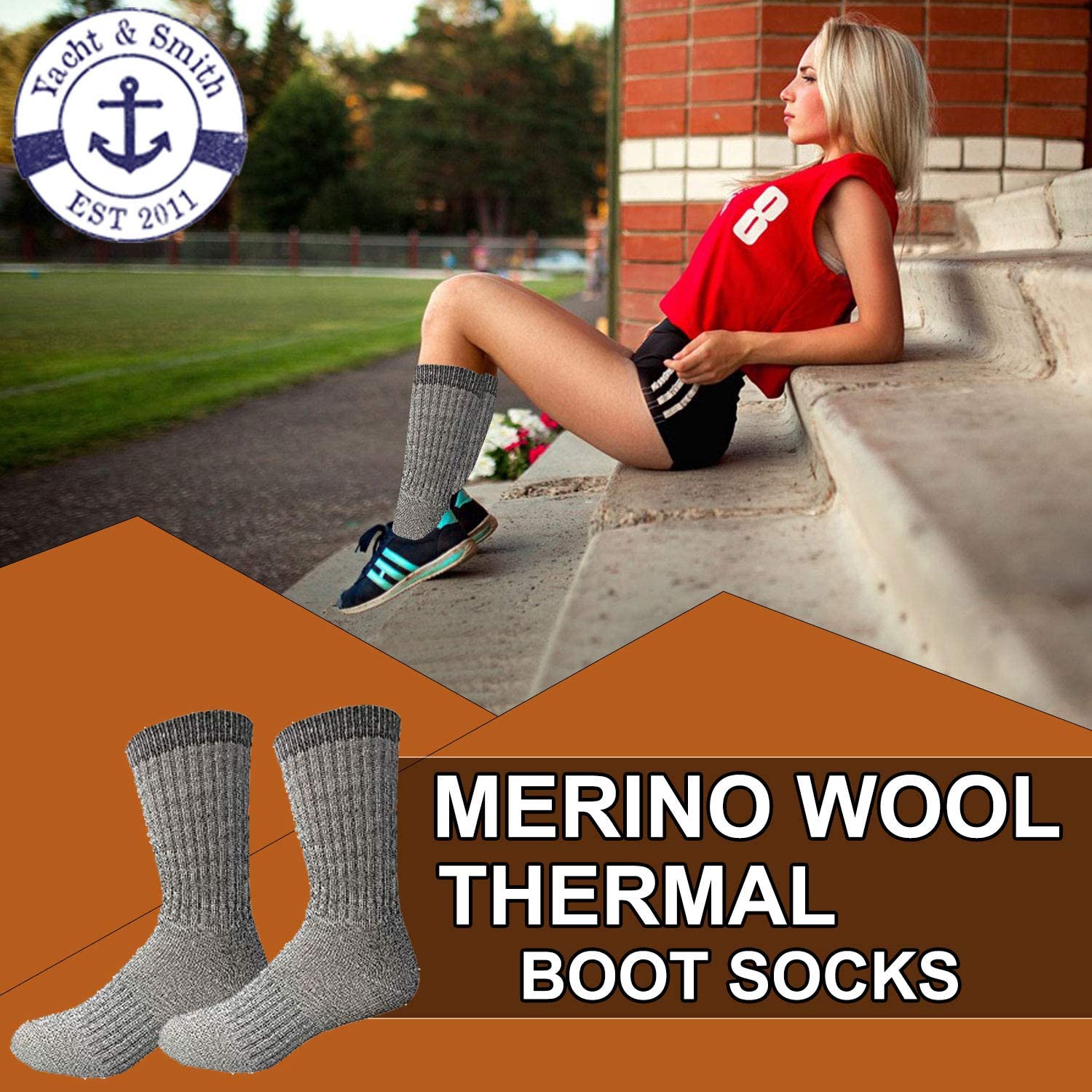 Yacht & Smith Wholesale Bulk Merino Wool Thermal Hiking Boot Socks. Made with real merino wool and a blend of other fine fibers for a soft and snug feel. Great for wearing with boots or sneakers.