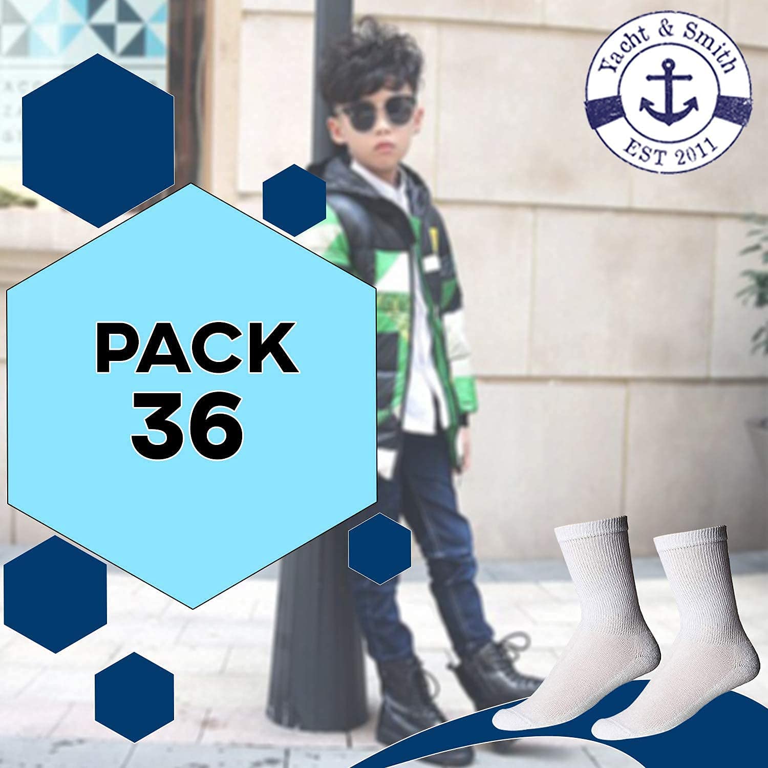 Yacht & Smith by SOCKS'NBULK branded crew socks are known to be a great product geared for basic every day casual wear. Our selection of crew socks are sized ranged from young children to plus size adults. Purchase wholesale socks in bulk for various reasons. Large house hold ? charity ? Organization give away ? shopping for wholesale socks will ensure your purchase was the most economical choice without jeopardizing quality. Wholesale sock deals offers the Yacht & Smith by SOCKS'NBULK branded crew socks in 4 color ways, White Black Gray and Navy with a high cotton content gauge of 80%. Cotton socks last longer than synthetic material socks and wear better during the hot weather season. If your needing this purchase sooner than expected please be sure to e mail us via the amazon contact seller control panel to advise us of your needed date. This will ensure our staff will do our best to make this accommodation.
