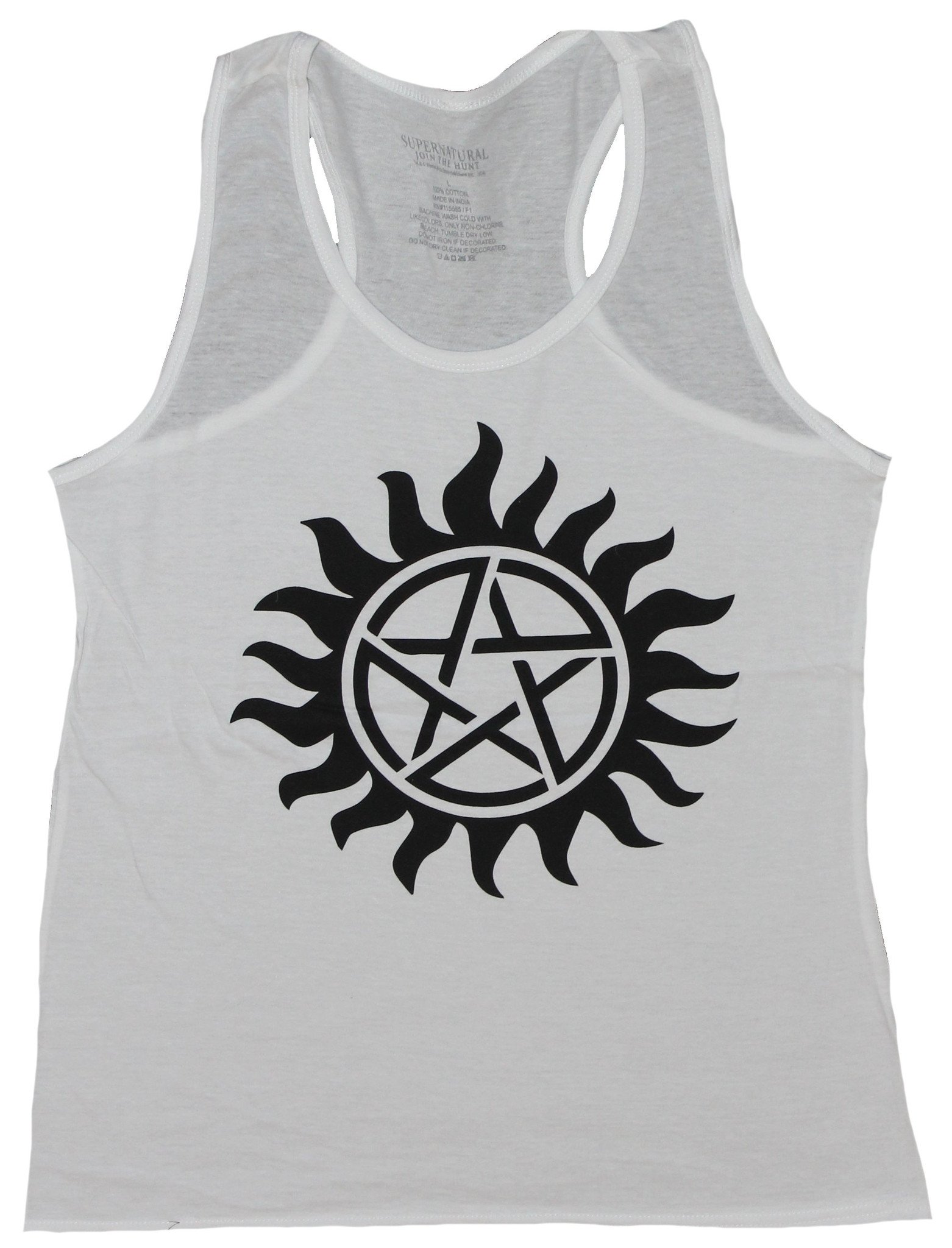 Supernatural Girls Juniors Tank Top- Pentagram Sun Symbol Image