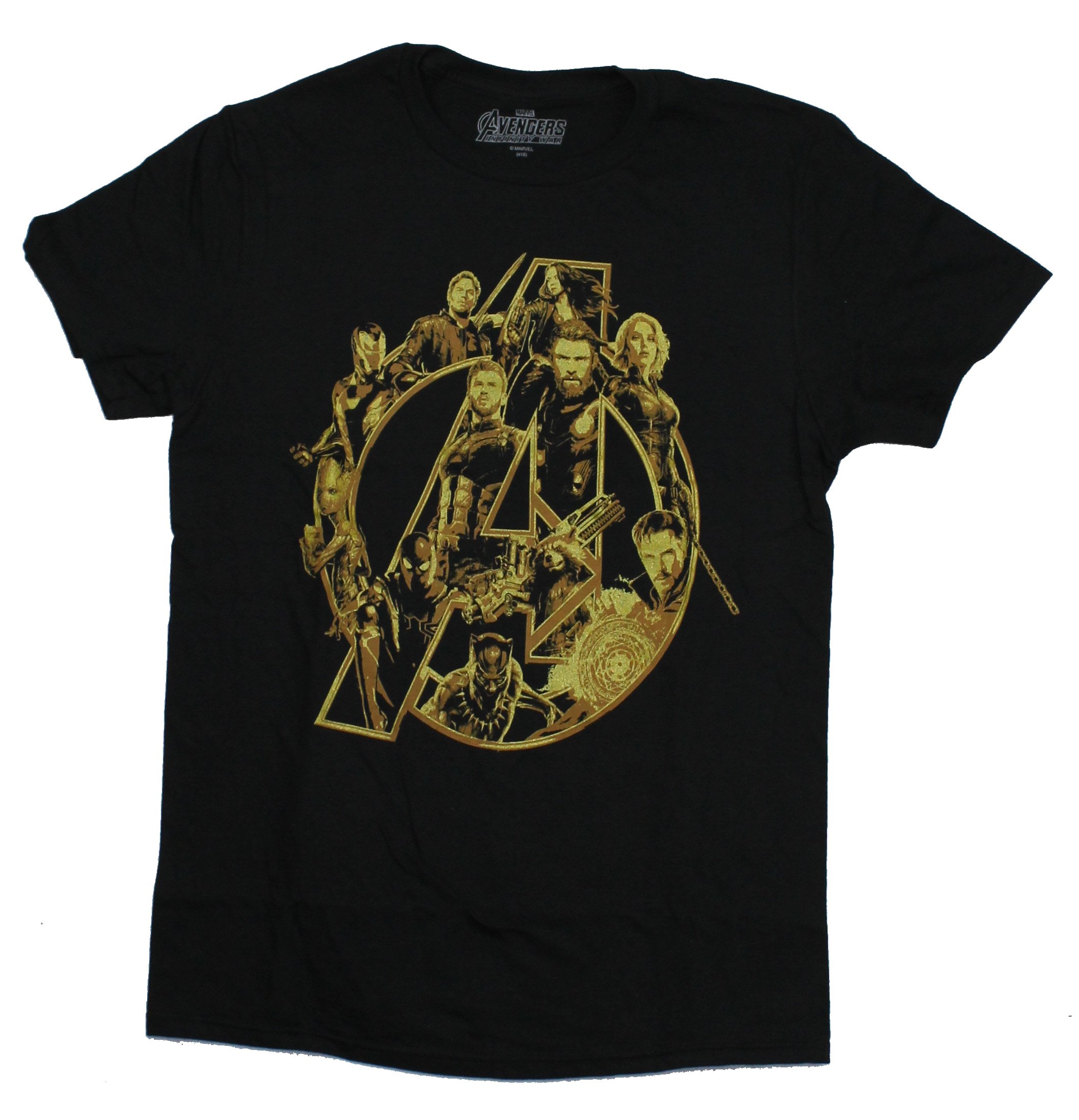 The Avengers Marvel Adult New T-Shirt - Infinity War Movie Face Gold Logo Pic