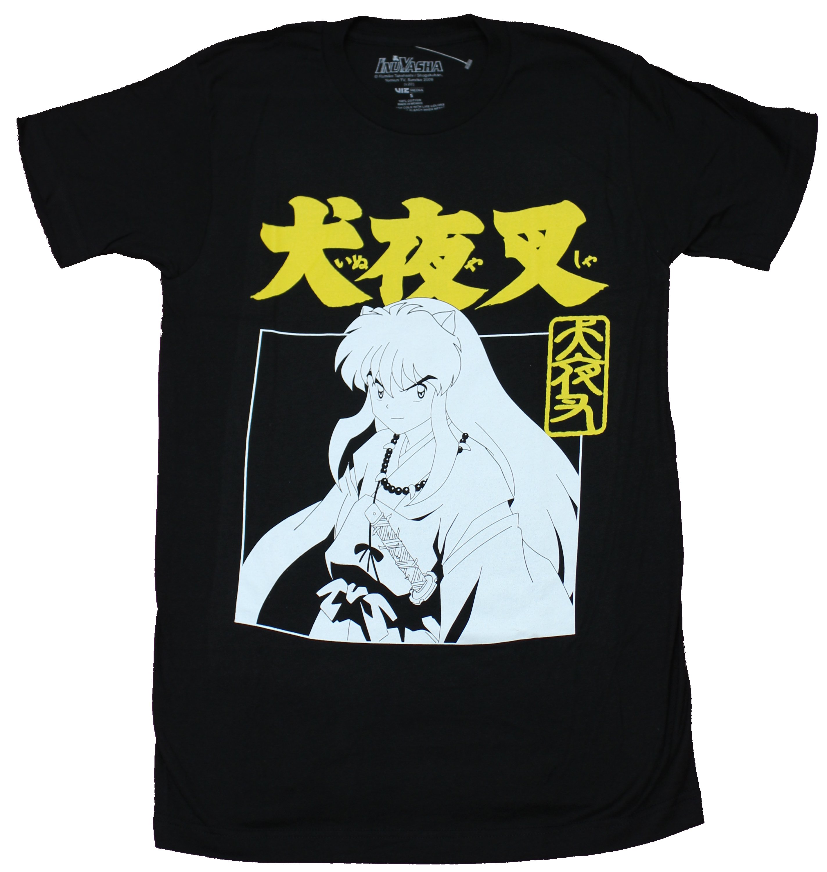 Inuyasha Adult New T-Shirt - White Boxed Character Under Yellow Kanji