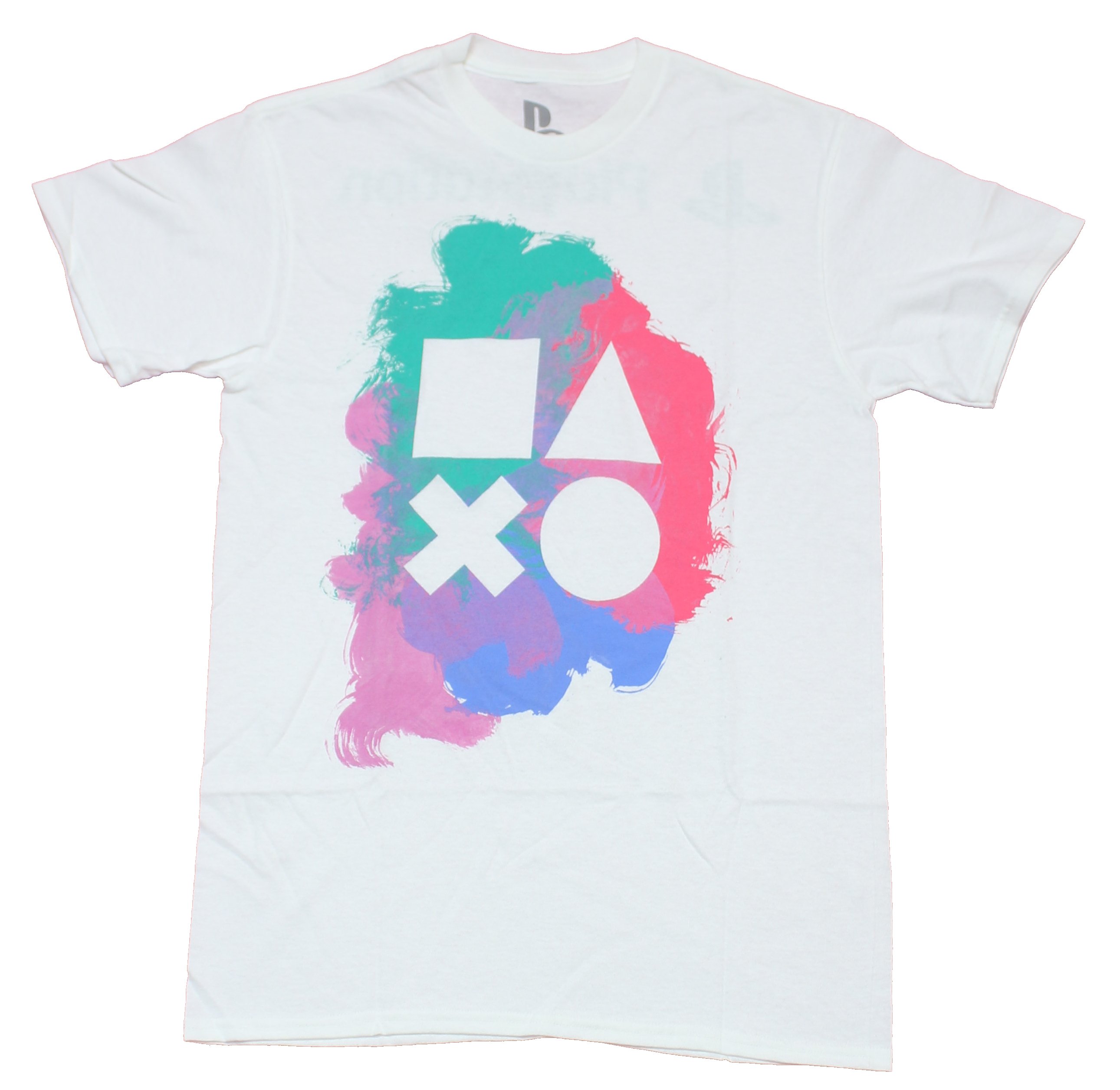PlayStation Mens T-Shirt - Button Symbols over Pastel Splash