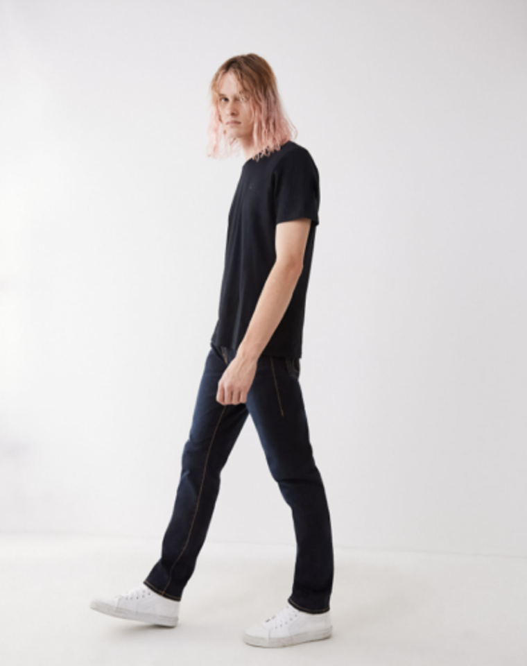 Details: The Geno Big T Slim Jean is your new favorite denim. This men's slim jean features subtle fading and 3D whiskering, and classic gold Big T stitching. Finished with 1/2 inch horseshoe detailing along the back pockets and our regular 34” inseam. Style: 106161