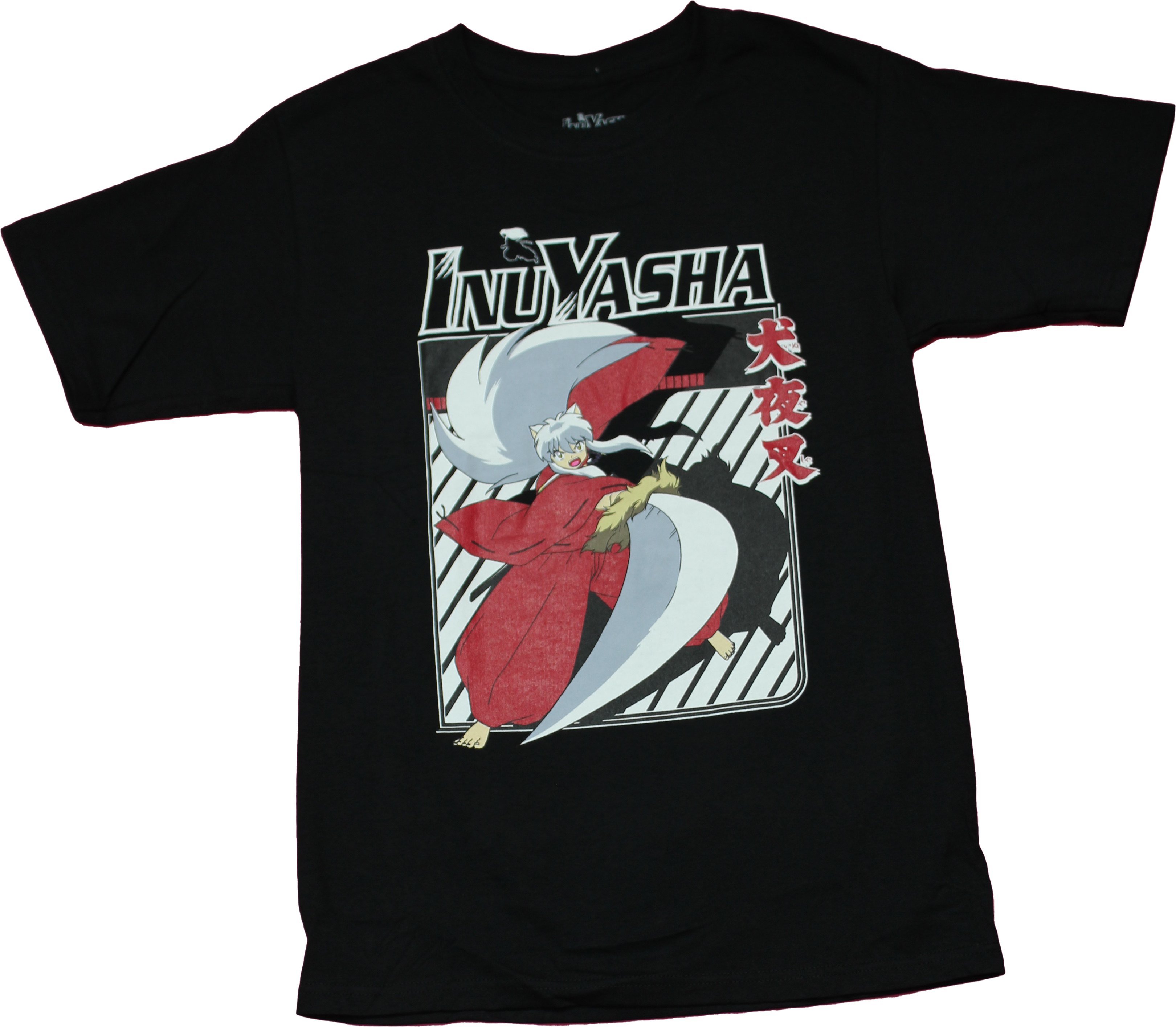Inuyasha New Adult T-Shirt - Wielding Blade Under Logo