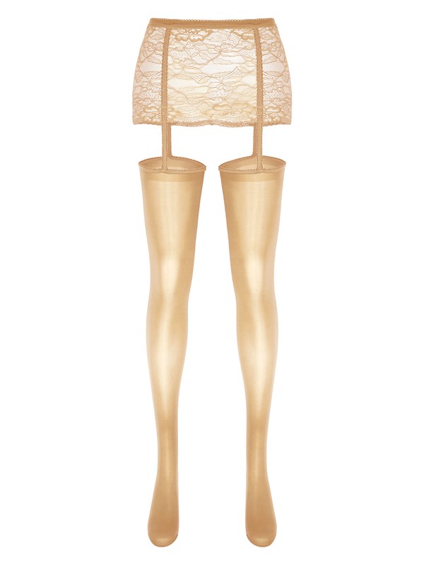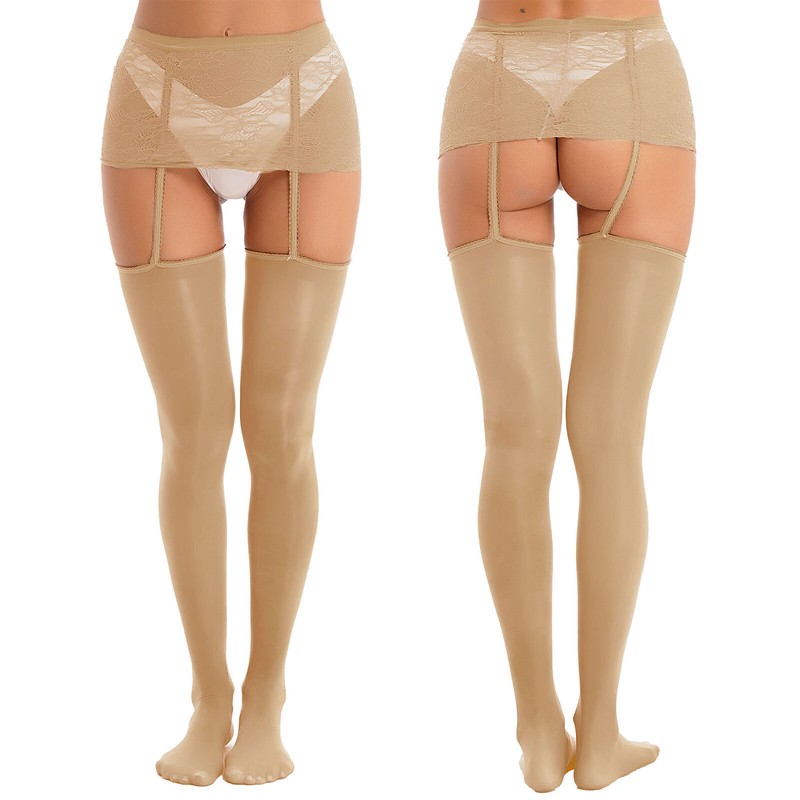 Semi see through lace mini skirt for women, comfy elastic waistband, designed with stockings.